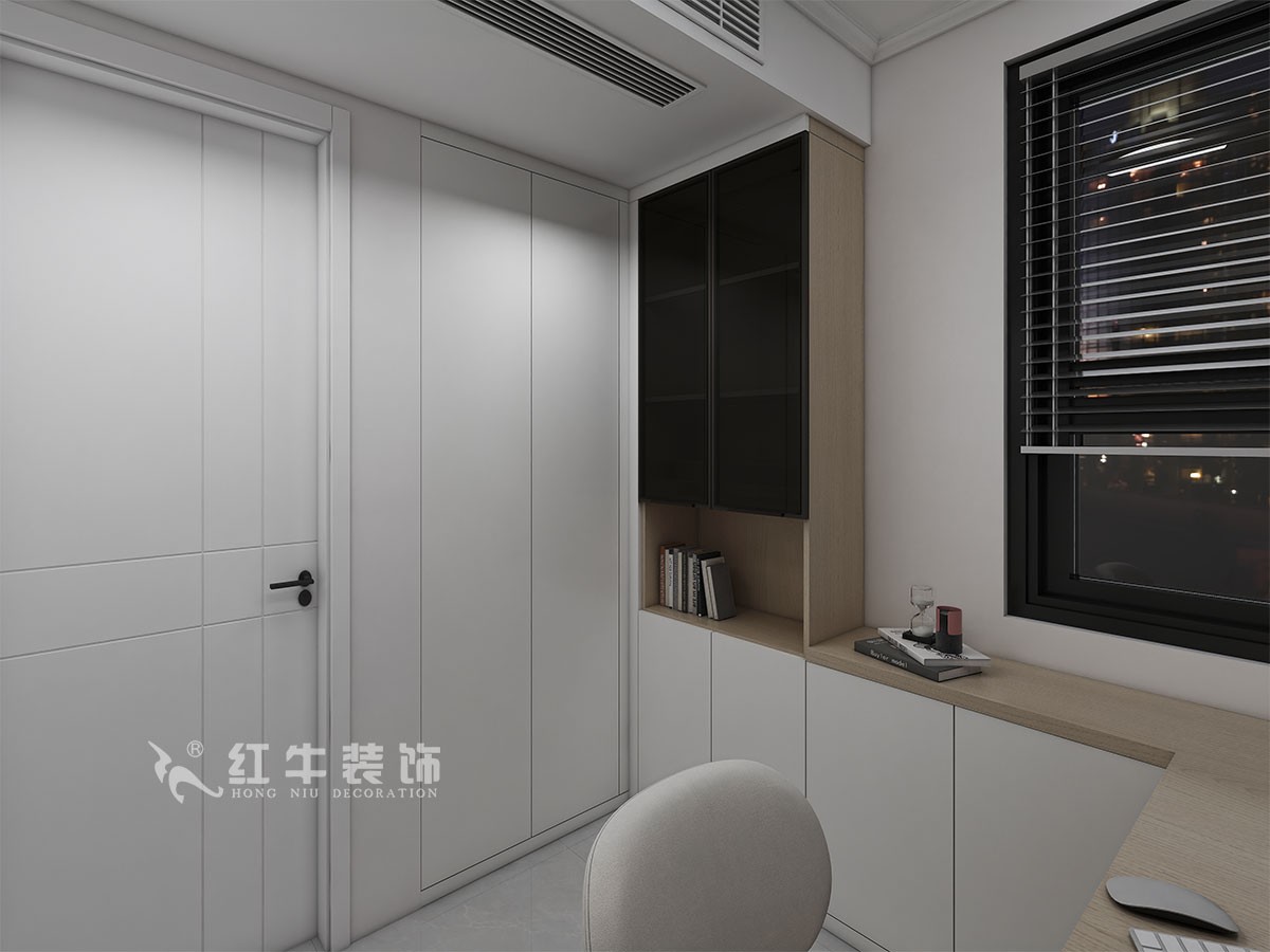 本案簡約,通過業(yè)主溝通之后,把北面儲物間墻體跟北陽臺打通,打通后成為獨(dú)立的書房。南次臥為了避免對著衛(wèi)生間門改動門了位置。室內(nèi)整體色彩偏于原木色,整體才能形成樸素的自然風(fēng)格。在家具裝飾方面選擇簡單大方、清新自然。