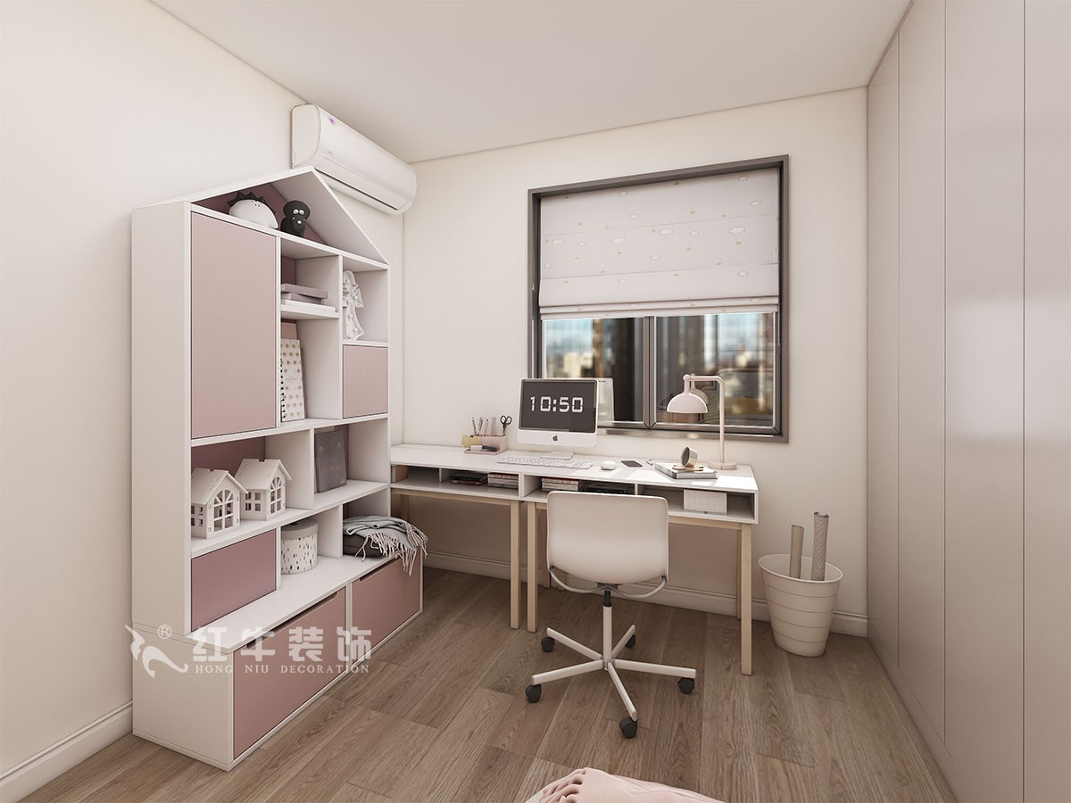 此案主要是一家三口居住,在舒適度上要求比較高,臥室是整套房子中最私人也是最體現(xiàn)出溫馨休閑感的空間,在設計時體現(xiàn)出靜謐舒適的感覺,并且與其他空間明顯的區(qū)別,北臥室把門洞調(diào)整了一下,南北更通透,通風效果更好,區(qū)域劃分明顯,動靜分離。吊頂簡潔大氣,配以輕現(xiàn)代家具,完美闡釋了簡約風格。整體現(xiàn)代簡約風格的設計,搭配上顯眼的綠色植物讓整個空間呈現(xiàn)出一種生機勃勃的自然美。