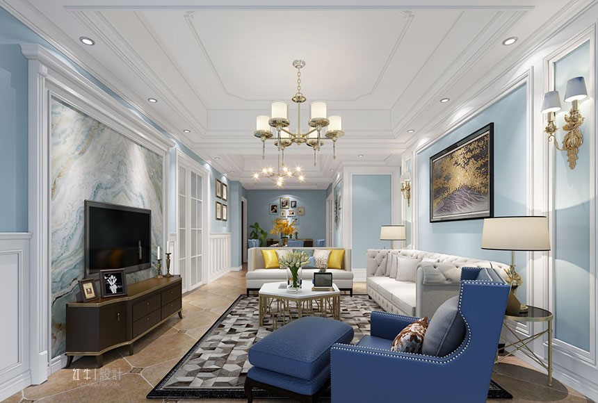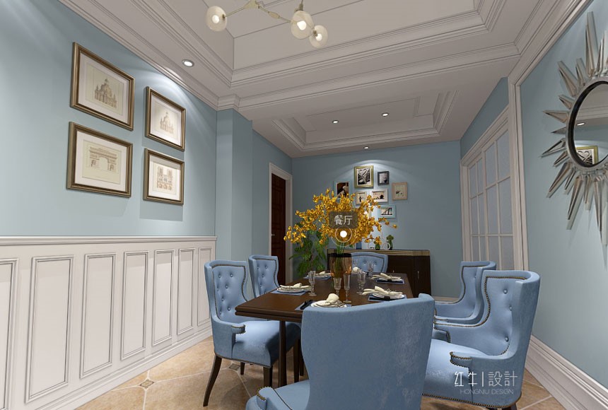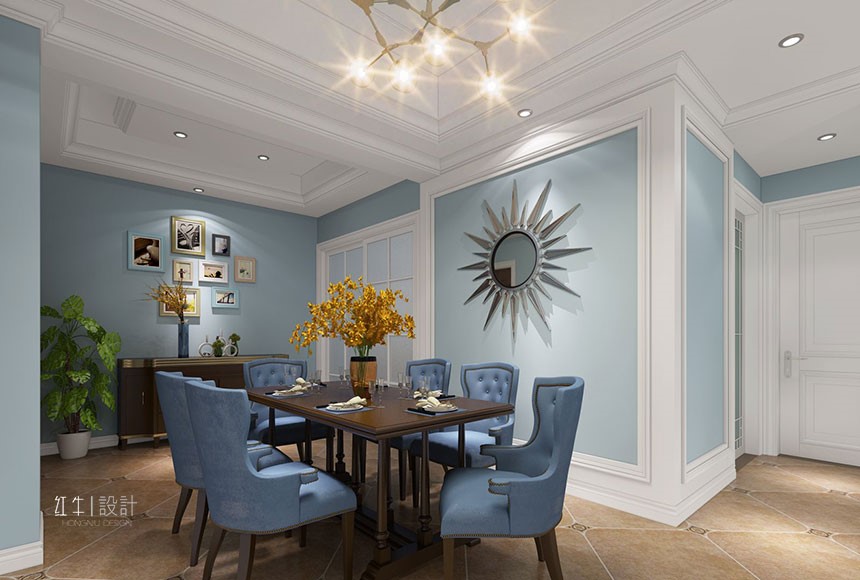 戶型屬于面積135平方,業(yè)主想在忙忙碌碌的一天之后,回到自己溫馨的屋子總是尋找一個安靜的角落享受家庭生活的溫馨,城市的五顏六色的生活迷惑了我們的眼睛,讓我們在偌大的城市迷失了方向,只有那么一個安靜的角落屬于我們,那就是我們的家。房間的室內(nèi)以米黃色為主,但處處透露出家的溫馨。客廳,餐廳,主色調(diào)為淡色,地面采用實木地板為主。此設計藍色調(diào)歐式家居風格的這些元素也正好迎合了時下的文化資產(chǎn)者對生活方式的需求,即:有文化感、有貴氣感,還不能缺乏自在感與情調(diào)感