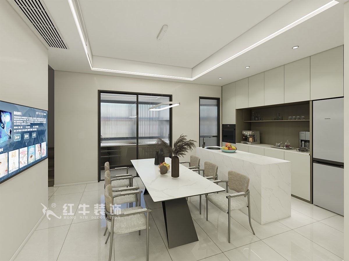 1、本案根據(jù)客戶的需求,把北面陽臺(tái)做成了廚房,然后再原來的廚房的位置做了一個(gè)西廚和吧臺(tái),方便客戶的生活,小的家電都放在了西廚這邊,生活分區(qū),生活更加便利。