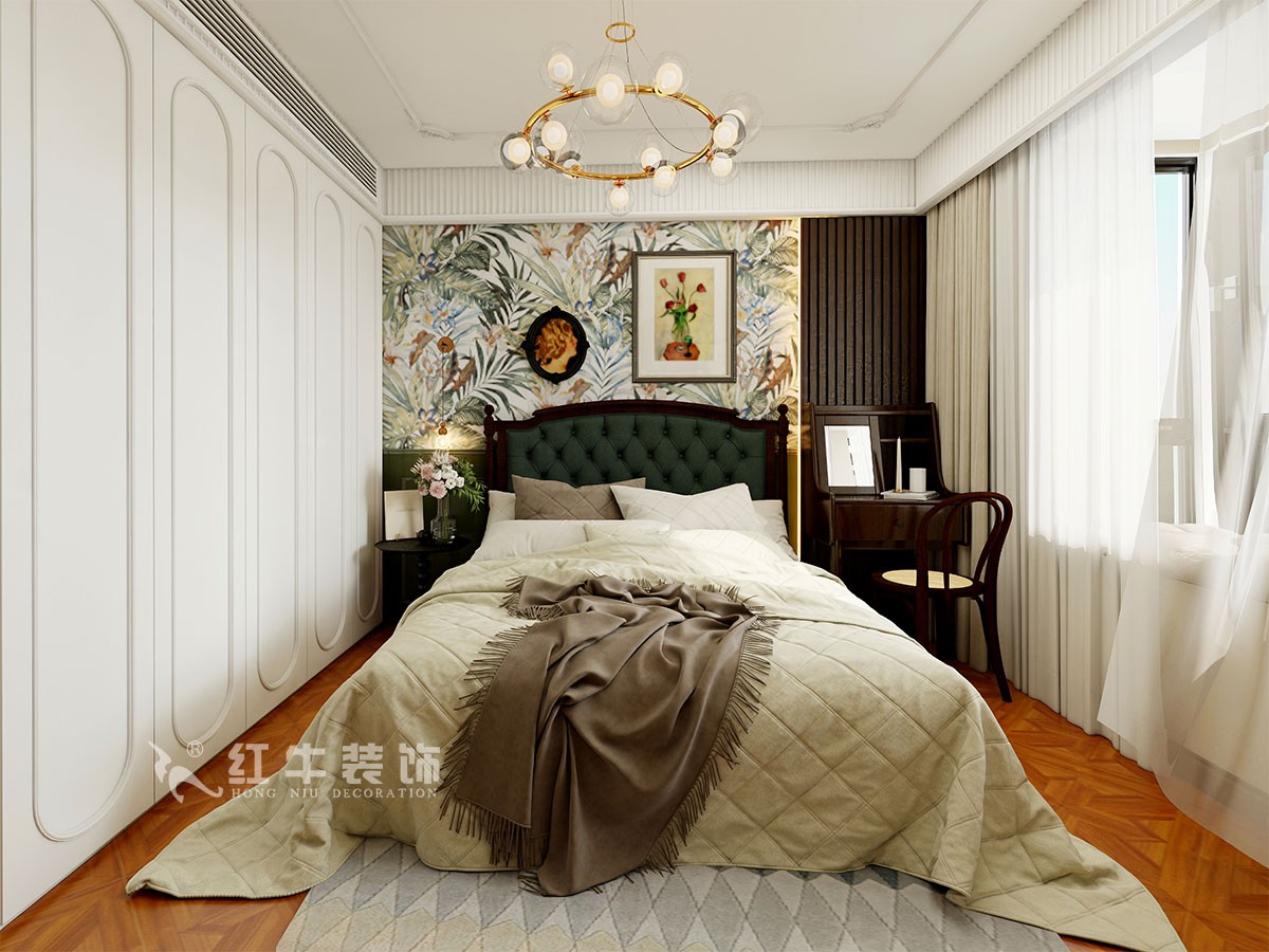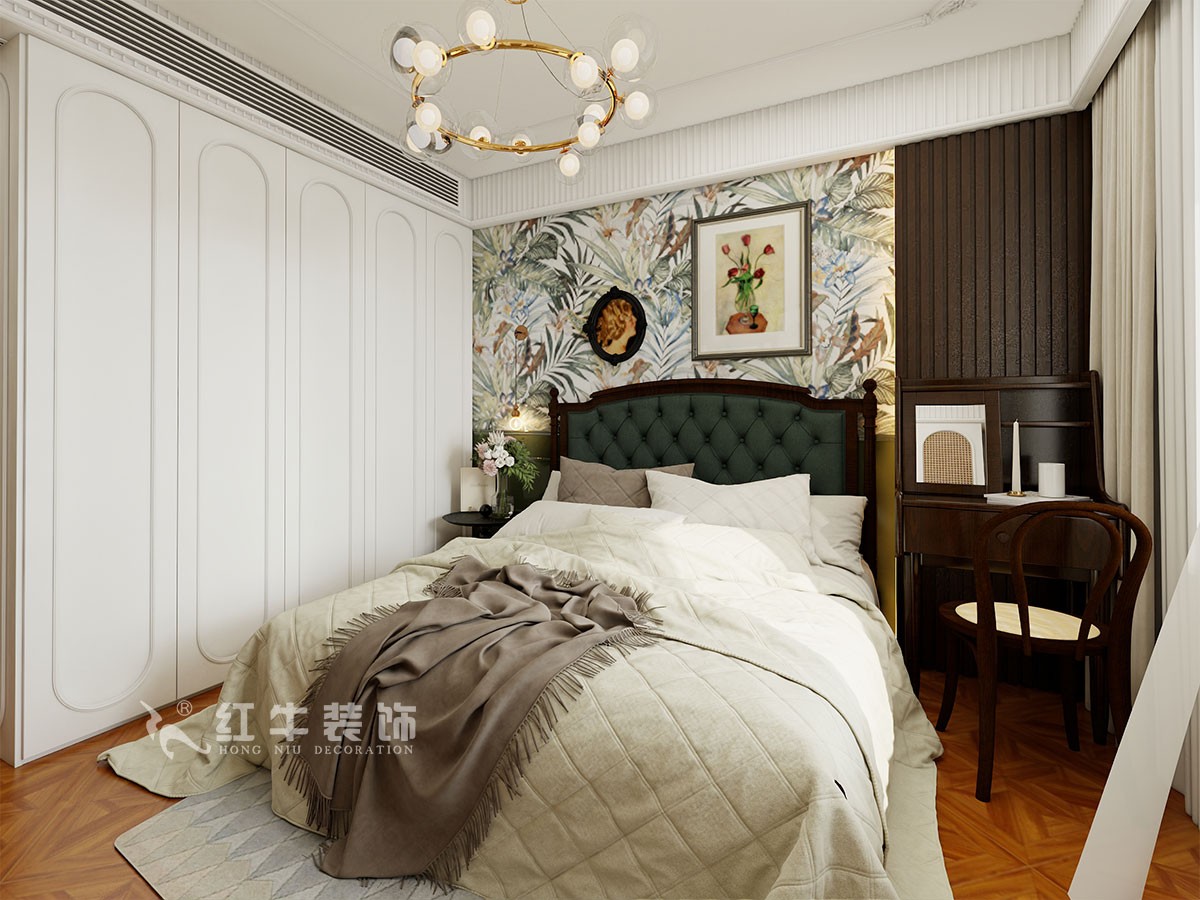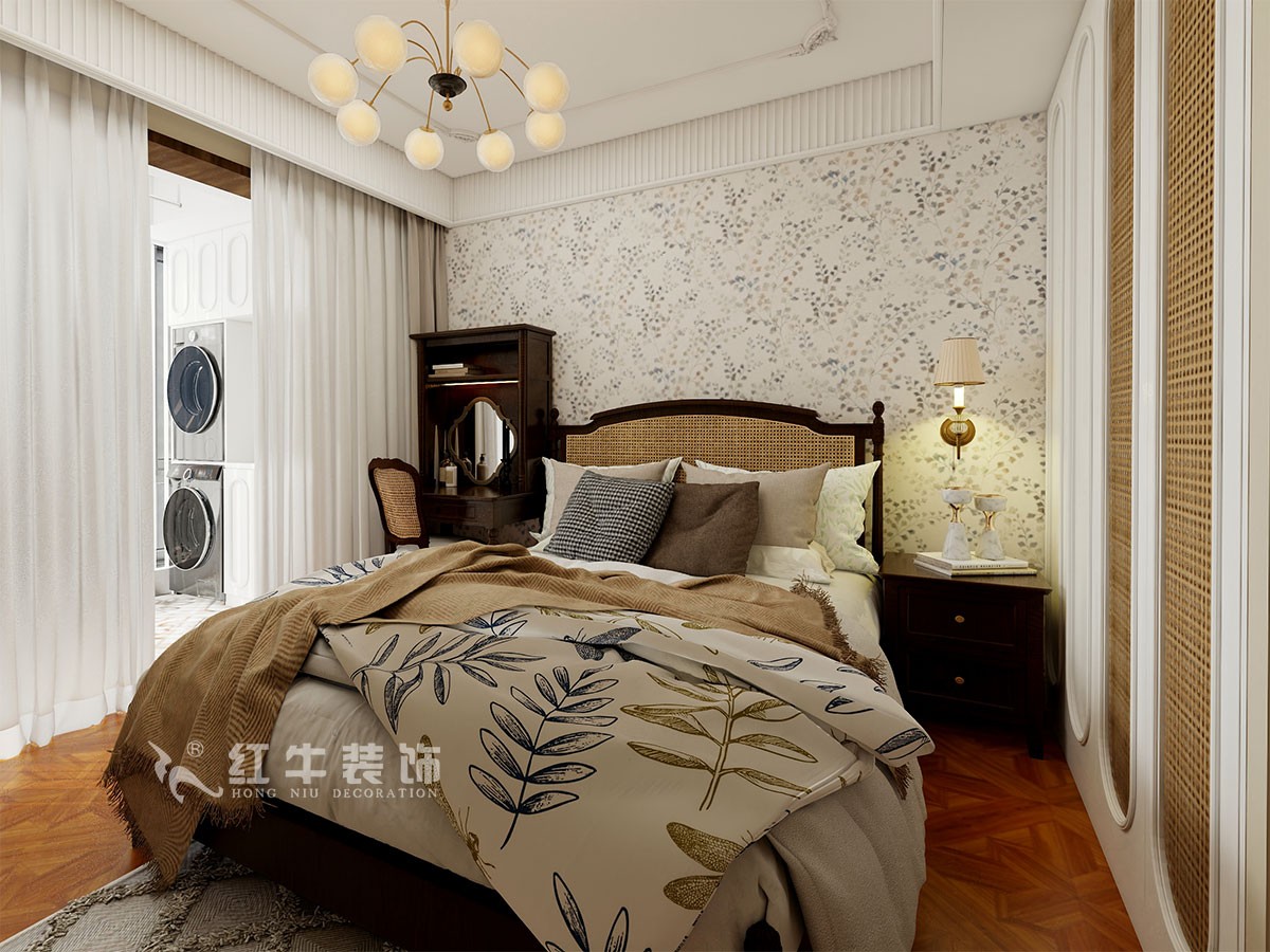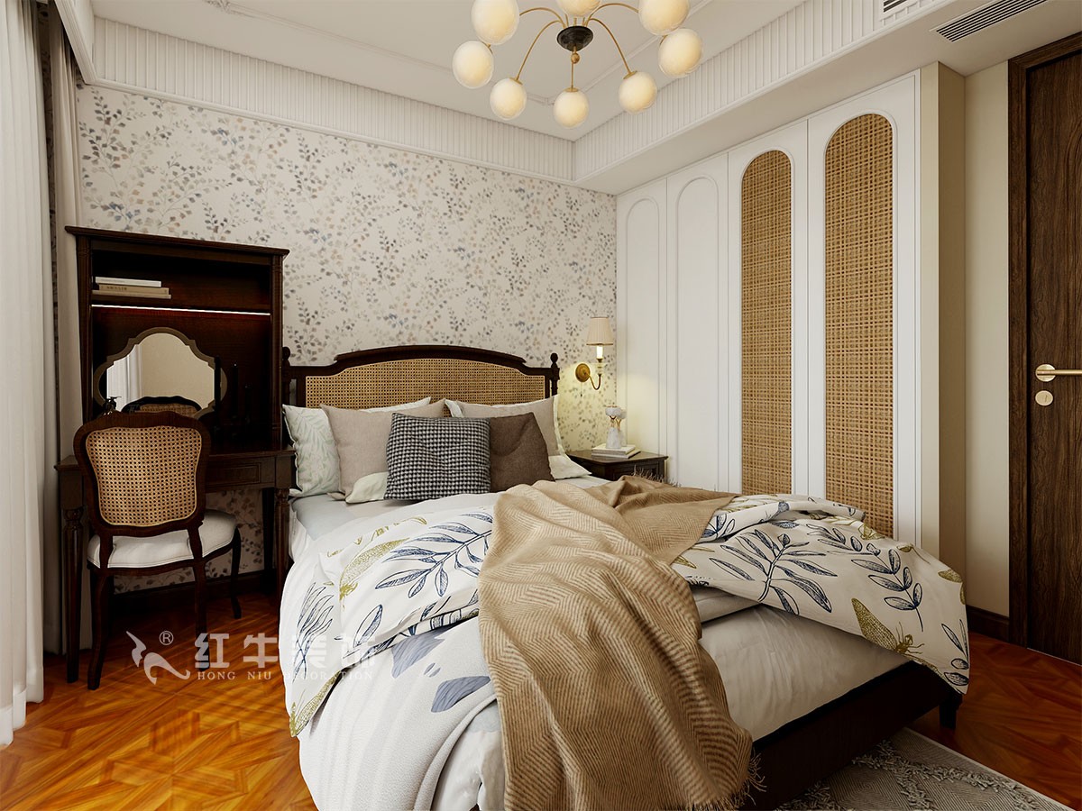 復(fù)古文藝的黃銅吊燈搭配古樸自然的壁燈,高雅素凈,給臥室?guī)?lái)了更加詩(shī)意的氛圍,增添了生活的情趣。古樸精致的床頭柜加上了藤編的元素,心情都變得平穩(wěn)寧?kù)o。