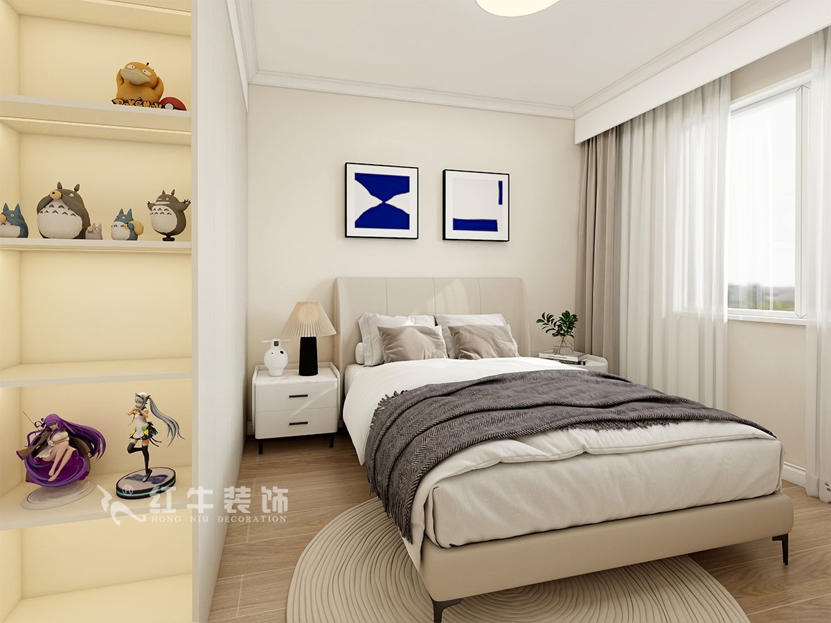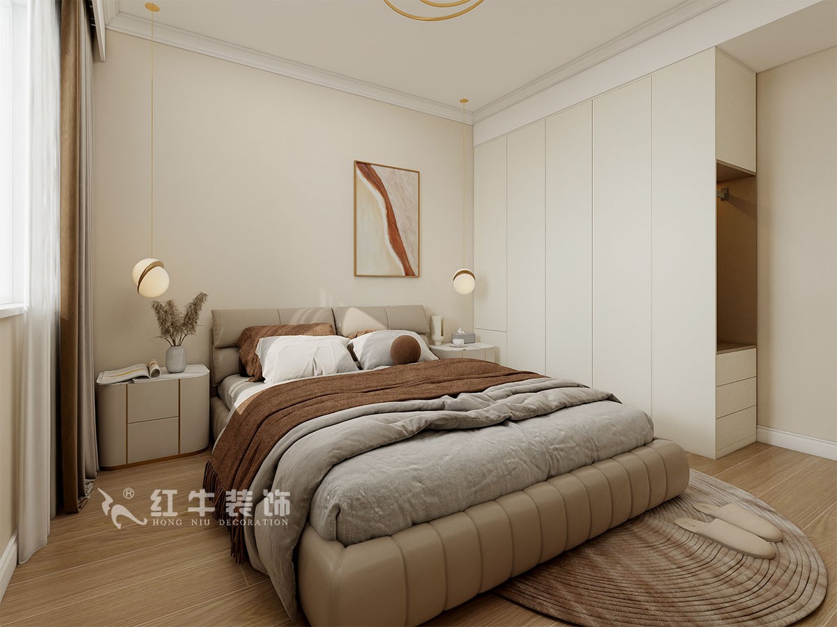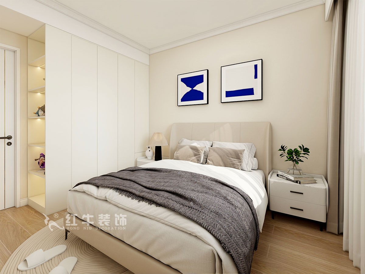 臥室說明:搭配大面積的白色定制衣柜,床頭的光源以不同形勢呈現(xiàn),既滿足不同燈光需求,又恰到好處地起到了裝飾效果,使整體臥室空間呈現(xiàn)明亮、溫柔的舒適狀態(tài)。