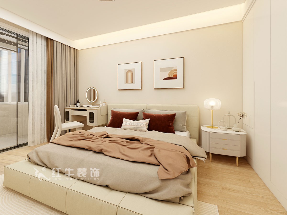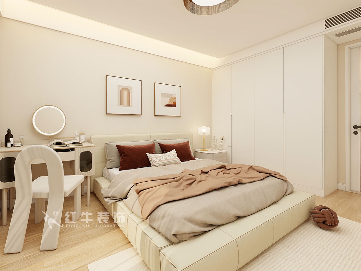 風格定義為現代簡約。色彩以白色、暖灰色作為主色,木色作為點綴,時尚但不缺乏溫馨。局部跳色增加層次,家具選擇上也冷暖搭配,比較經典。
