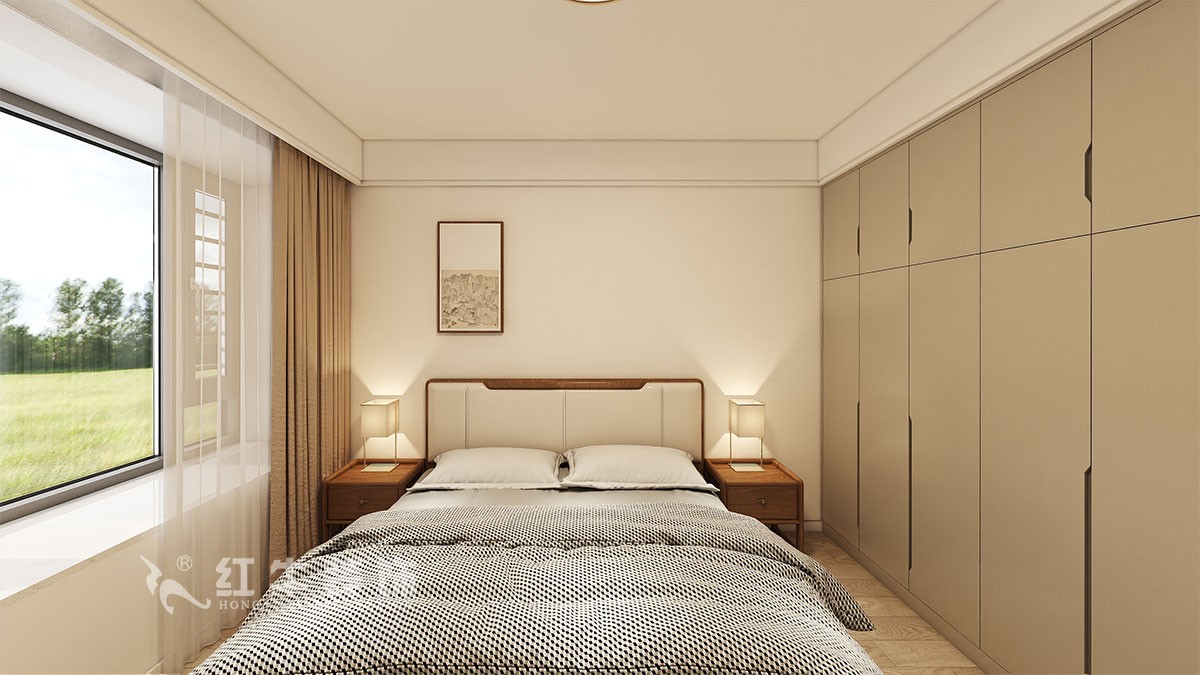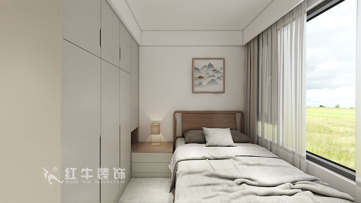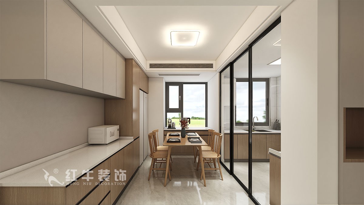 本案客戶一家一代人居住,小孩偶爾過(guò)來(lái),大體結(jié)構(gòu)不需要那么多房間,將靠近廚房一側(cè)的房間打通,改為餐廳,奶白色的墻體顏色,搭配原木色的柜子和餐桌椅,灰色的地磚,使得空間溫暖自然。巨大的儲(chǔ)物柜,滿足居家使用,臥室雙眼皮吊頂設(shè)計(jì)使空間更加不壓抑,原木的床具滿足居住需求和觀感,和灰色的柜子相得益彰。整個(gè)空間色調(diào)溫和,很適合臥室的氛圍感。