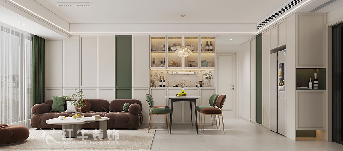 業(yè)主一家三口居住,給小孩上初中用的,要有強(qiáng)大的儲(chǔ)物空間,廚房做了開放式的設(shè)計(jì),冰箱做了嵌入式的設(shè)計(jì),跟鞋柜儲(chǔ)物柜形成一體。衛(wèi)生間做了干濕分離的設(shè)計(jì),不僅美觀,同時(shí)提升了舒適度。利用客廳的空間,做了整面的儲(chǔ)物柜和餐邊柜,滿足了強(qiáng)大的儲(chǔ)物功能,同時(shí)使得空間更加豐滿、大氣、時(shí)尚。