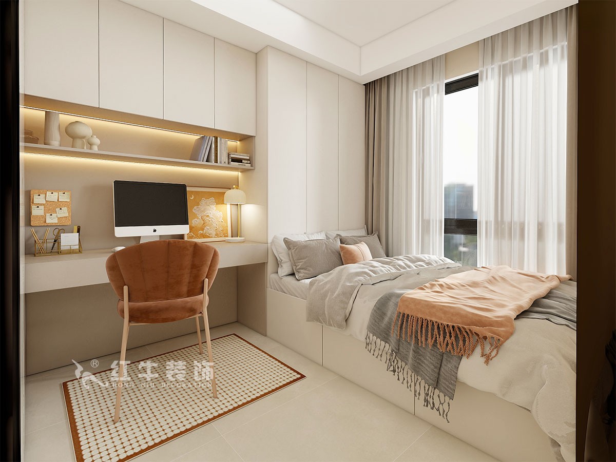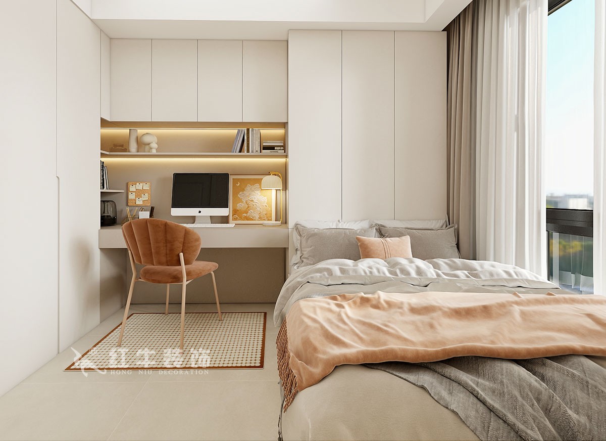 客戶是一個剛剛參加工作的小女孩,原始戶型比較方正沒有做大的改動,入戶玄關(guān)做完鞋柜后比較窄,廚房稍微縮小了一點,這樣空間更合理舒適??蛻粝矚g溫馨的奶油風(fēng),臥室門做隱形門方案,這樣電視墻就是一個整體,整個風(fēng)格既簡約又時尚。