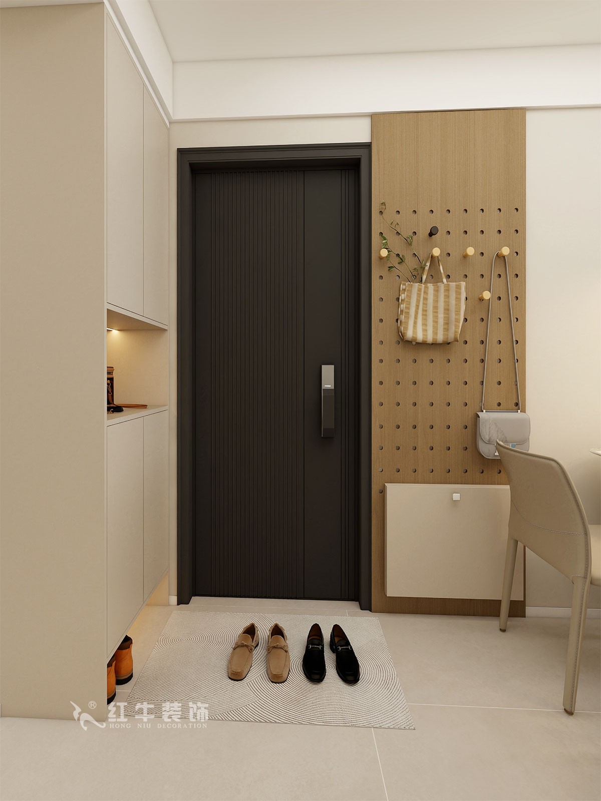 餐廳說明:餐廳改進門左手邊,入戶做了換鞋凳加洞洞板,也提升了適合家庭的生活質(zhì)量。
