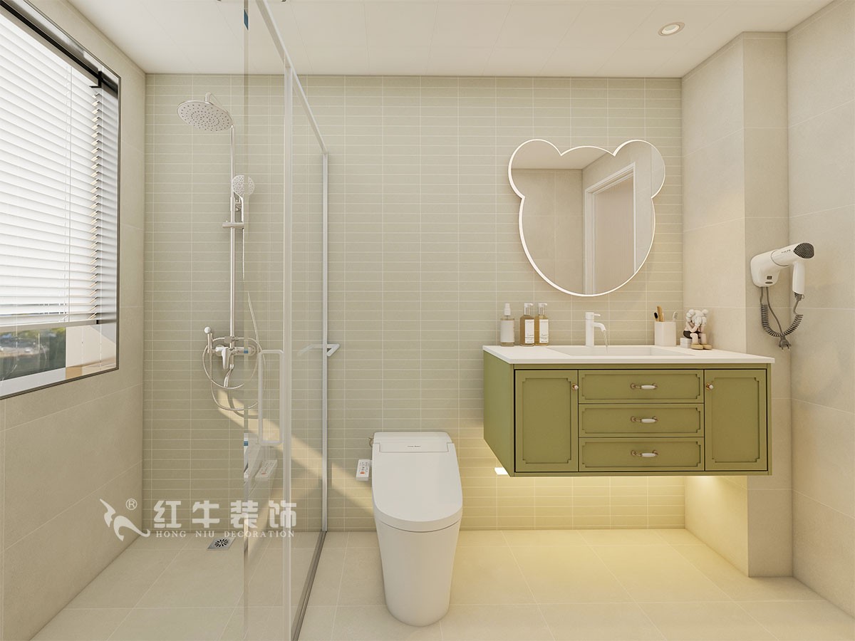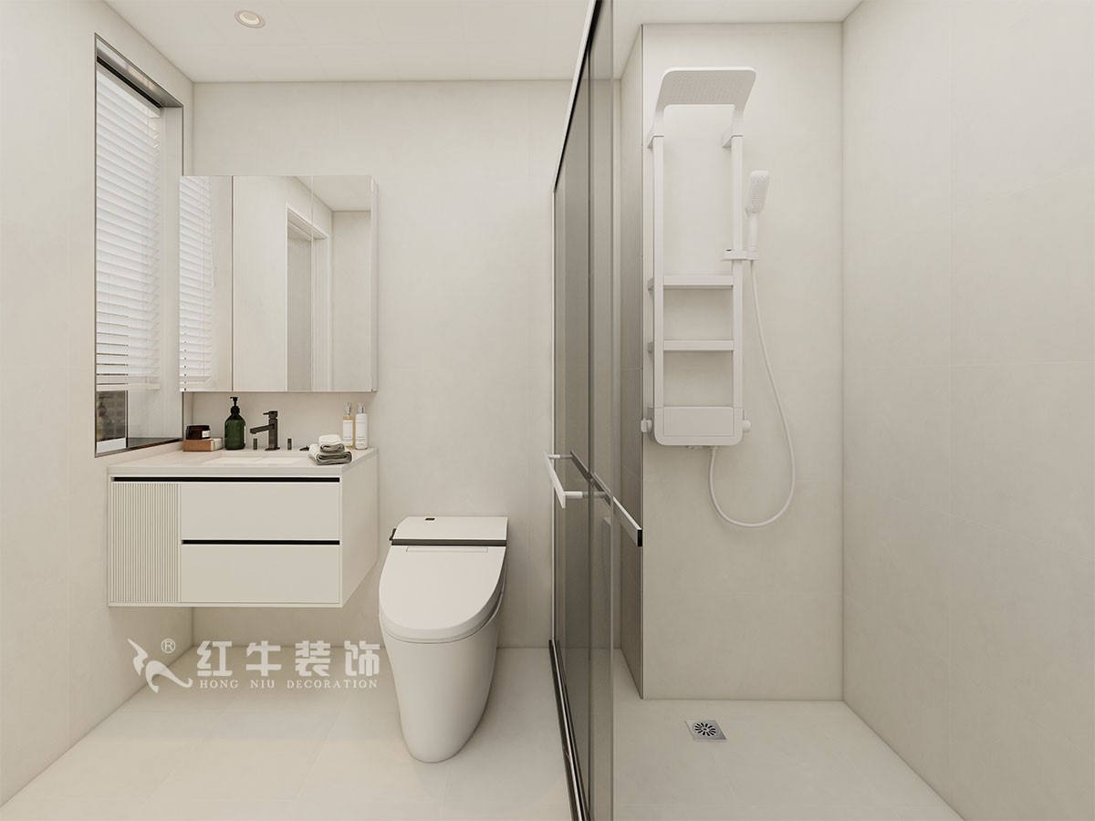 衛(wèi)生間說(shuō)明:選擇整體色彩搭配干凈、大方,選擇大尺寸淺灰色瓷磚上墻,氛圍感溫馨感滿滿。