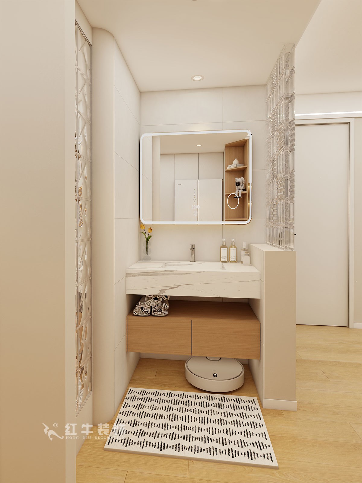 衛(wèi)生間說明:干區(qū)選擇整體色彩搭配干凈、大方,選擇大尺寸白色瓷磚上墻,氛圍感溫馨感滿滿。