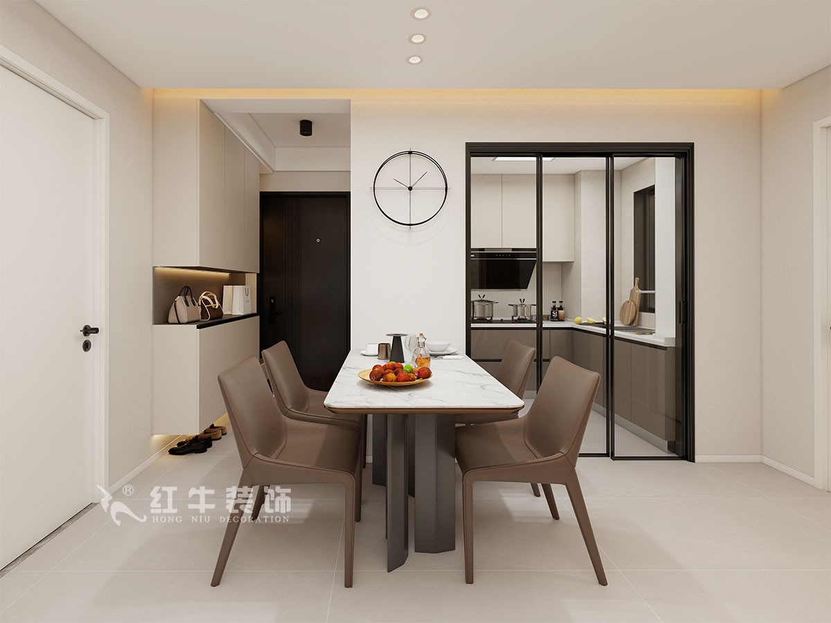 一家三口居住,女業(yè)主對裝修希望比較簡單大氣,希望未來的房子簡潔、實(shí)用、大氣,最終確定了現(xiàn)代風(fēng)。而本案在設(shè)計(jì)時(shí),其特色是將設(shè)計(jì)的元素、色彩、照明、原材料簡化到最少程度。但是對材料的舒適度要求很高。因此,現(xiàn)代的空間設(shè)計(jì)非常含蓄,往往能起到以少勝多、以簡勝繁的效果。藝術(shù)創(chuàng)意宜簡不宜繁,宜藏不宜顯。