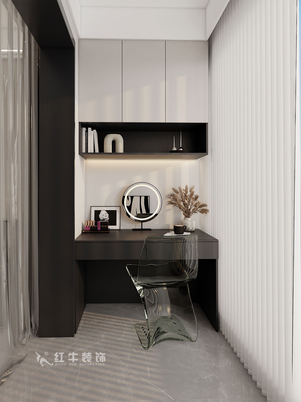 本案的設(shè)計定位為現(xiàn)代黑白灰風(fēng)格??蛻羰且粚Ψ蚱蘧幼?。原始戶型比較方正,功能分區(qū)合理,儲藏功能稍小,原始主衛(wèi)面積大,劃分出一部分空間作為儲藏室。原儲藏室開間很小,儲藏不方便,并入兒童房,這樣兒童房空間更大功能更齊全。整體裝修簡潔明快,沒有過多的裝飾。