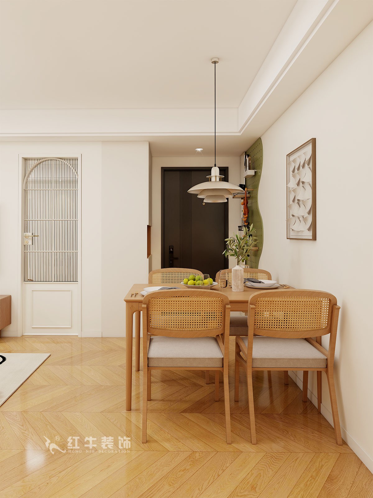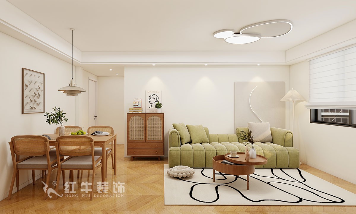 整個(gè)風(fēng)格定位現(xiàn)代原木風(fēng),配色以白色木色為主,打造一個(gè)休閑舒適的居家環(huán)境。