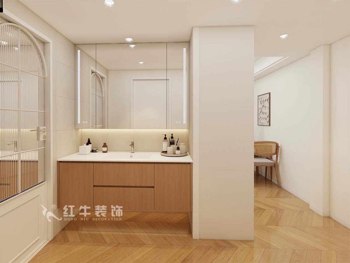 房間3房改一個(gè)衣帽間;衛(wèi)生間干濕分區(qū),進(jìn)行了重組,利用柜子的深度做了一個(gè)對(duì)過道的餐邊柜。