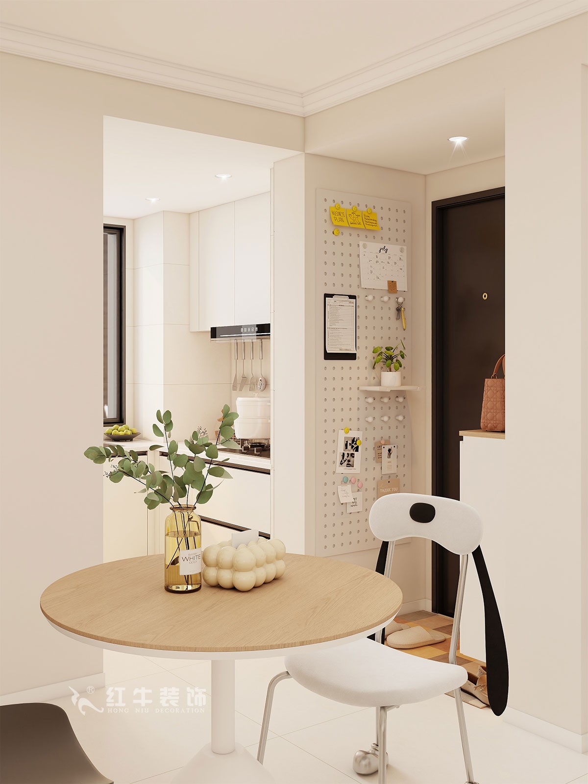 防盜門外推,增加入戶鞋柜與掛衣區(qū);