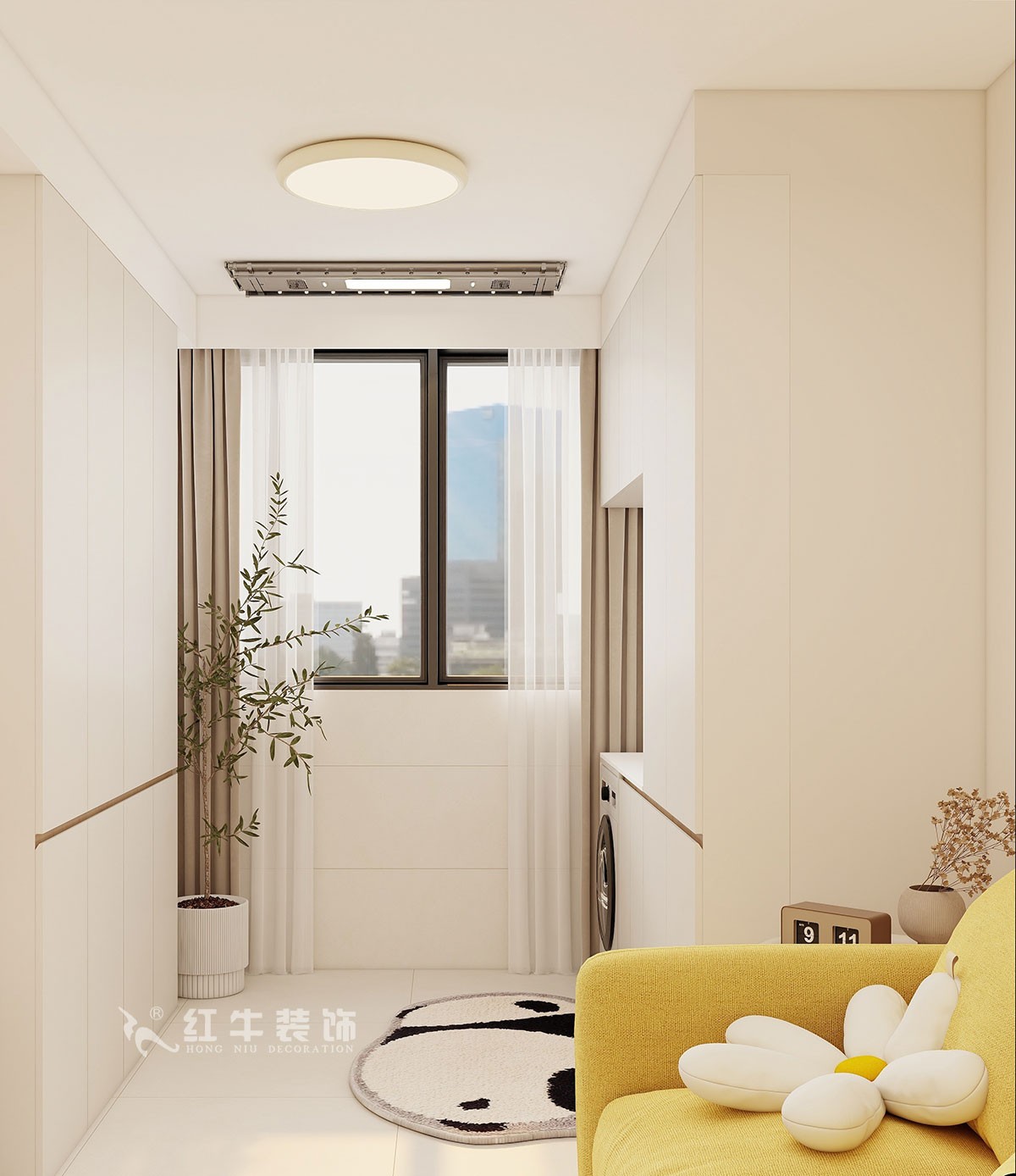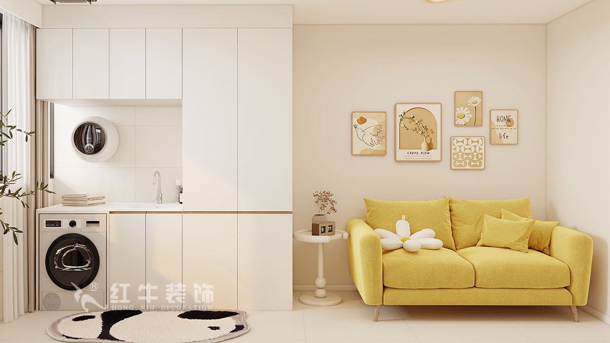 陽臺(tái)做洗衣機(jī)組合柜和家政柜。
