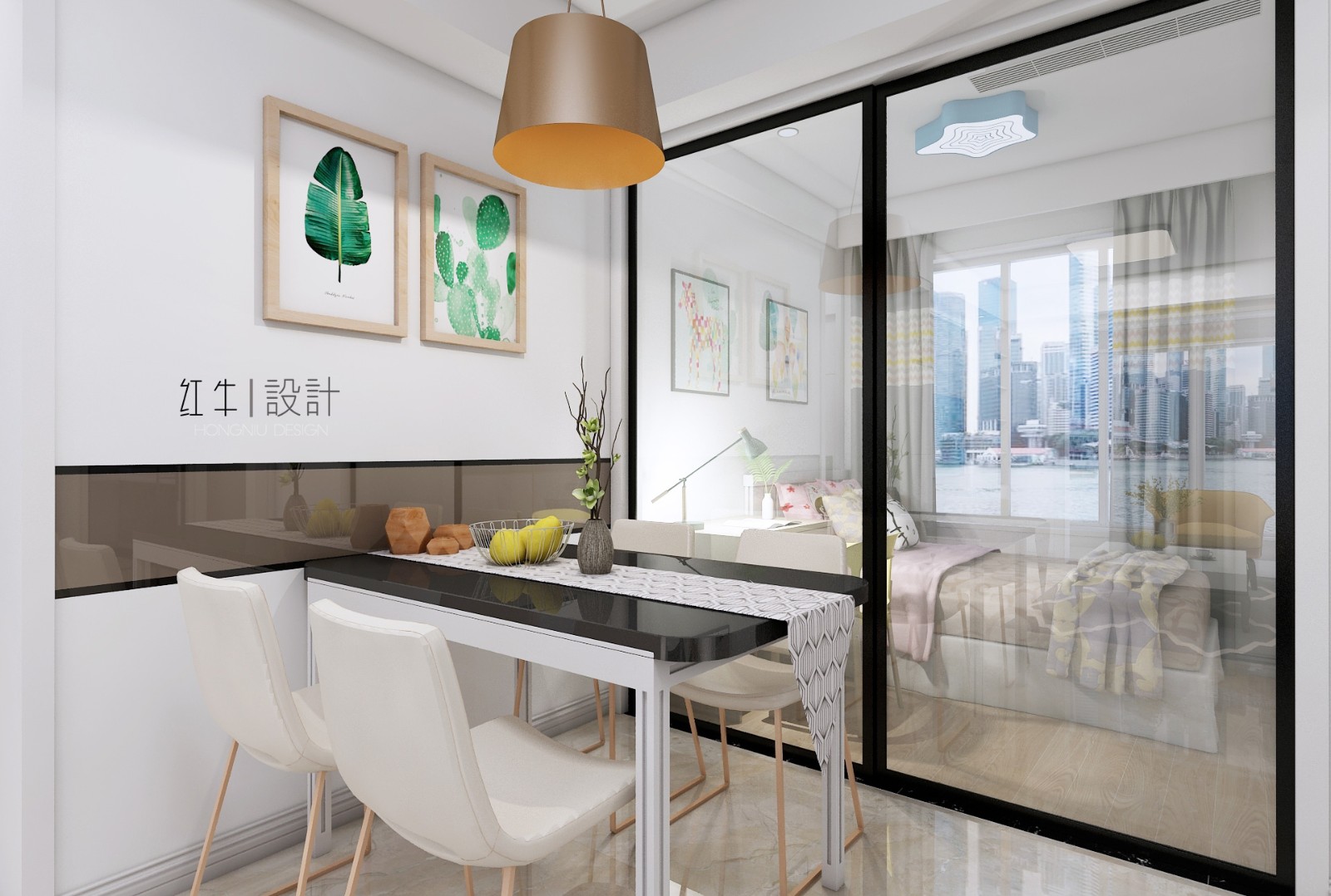 1. 利用餐廳區(qū)域改造出一個臥室,這樣滿足客戶的居住需求。