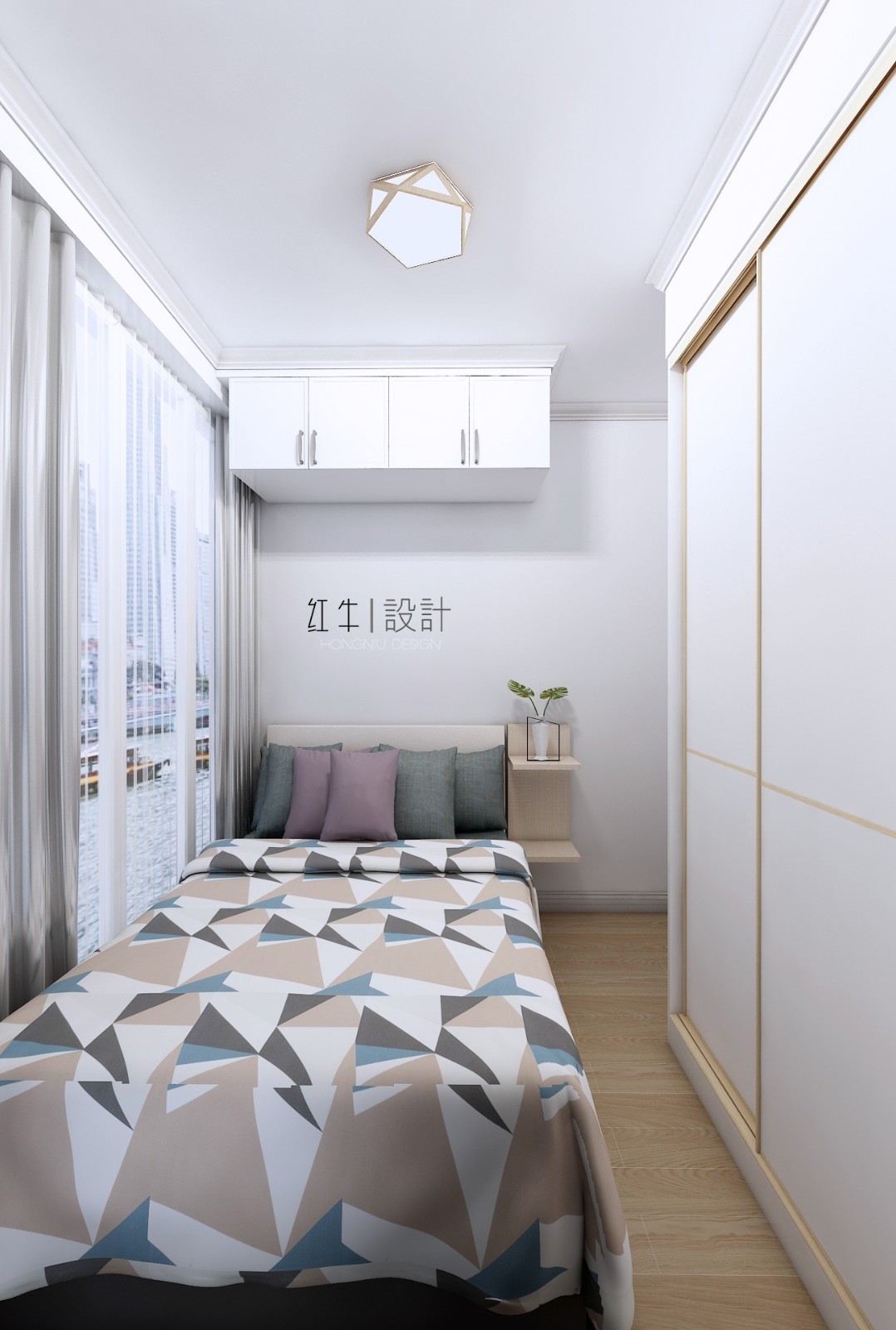 2.方案整體以白色家具為主,整體以簡約為主。后期用軟裝,家具整體搭配,制造出了一個舒適溫馨的小家。