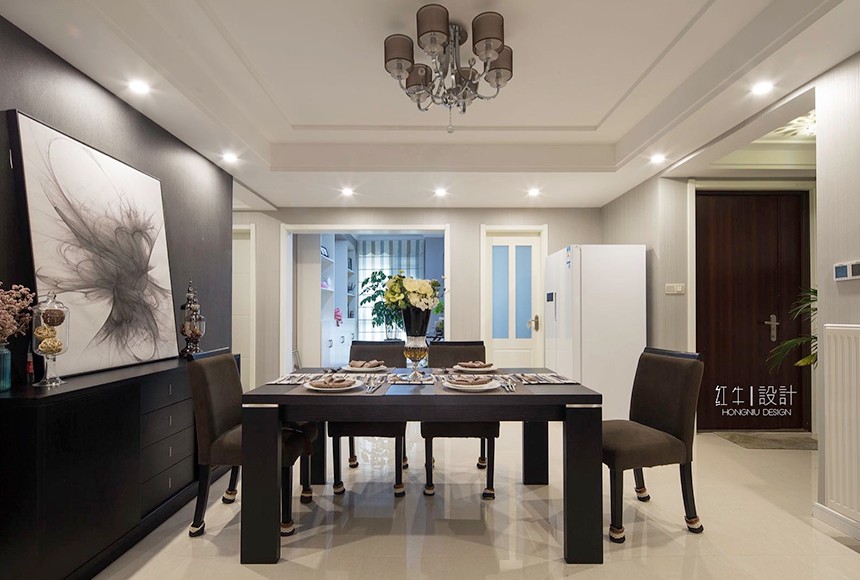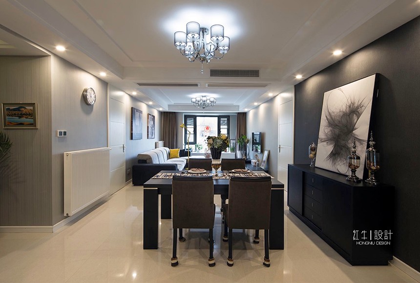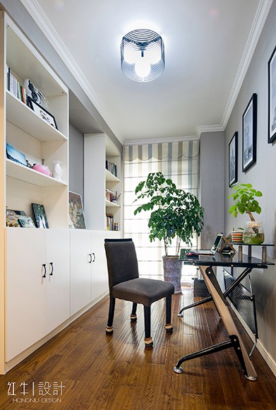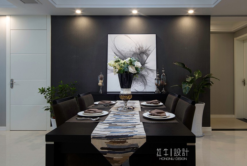 “寧動”設(shè)計主題即為“寧靜中的舞動”來源于客戶對裝修簡約而不簡單的要求,營造一種空間氛圍,體現(xiàn)主人公的氣質(zhì)與生活品質(zhì)。設(shè)計氛圍定位時,避免了過于現(xiàn)代夸張的居家風(fēng)格,而從簡約之美的表達方式和質(zhì)樸入新的自然內(nèi)在著筆。選擇了簡潔的手法和明亮的色調(diào),同時采用了深淺的對比,陳設(shè)軟裝上融入了現(xiàn)代簡約元素,營造出富有設(shè)計感的空間,更具有了深厚的文化內(nèi)涵。金屬飾品的陪襯,為空間營造時尚摩登的韻味。整體基調(diào)以灰色與深色為主,又無形中演繹出一種精英人群生活的品質(zhì)感。在經(jīng)過很長一段后仍然具有耐看的感覺。書房內(nèi)巨型的白色抽象波紋窗簾吸引來賓視線,在這里舒適、黑白分明的創(chuàng)建了清晰的視覺框架,營造出非凡的生活品味??臻g中的藝術(shù)性是感覺的提升,同時也是空間氣質(zhì)的表達,那是一種韻味,為空間增加一分耐人尋味的內(nèi)涵和附加價值。這不僅僅是對藝術(shù)品的追求,更是對空間藝術(shù)性的把控。