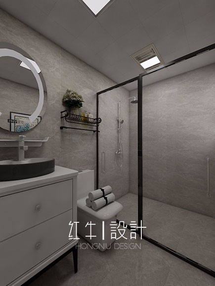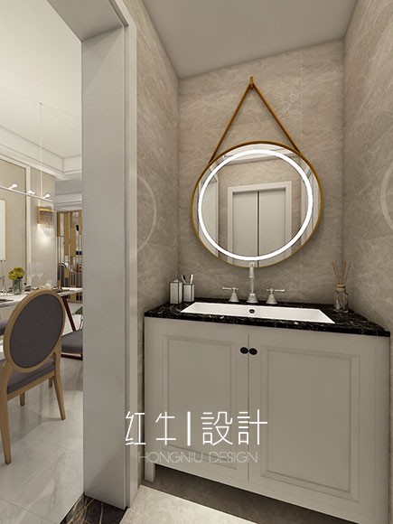 干濕分區(qū)功能性更強(qiáng),“銅”元素與大理石花紋相輔相成,舒張有致,更顯清爽整潔。