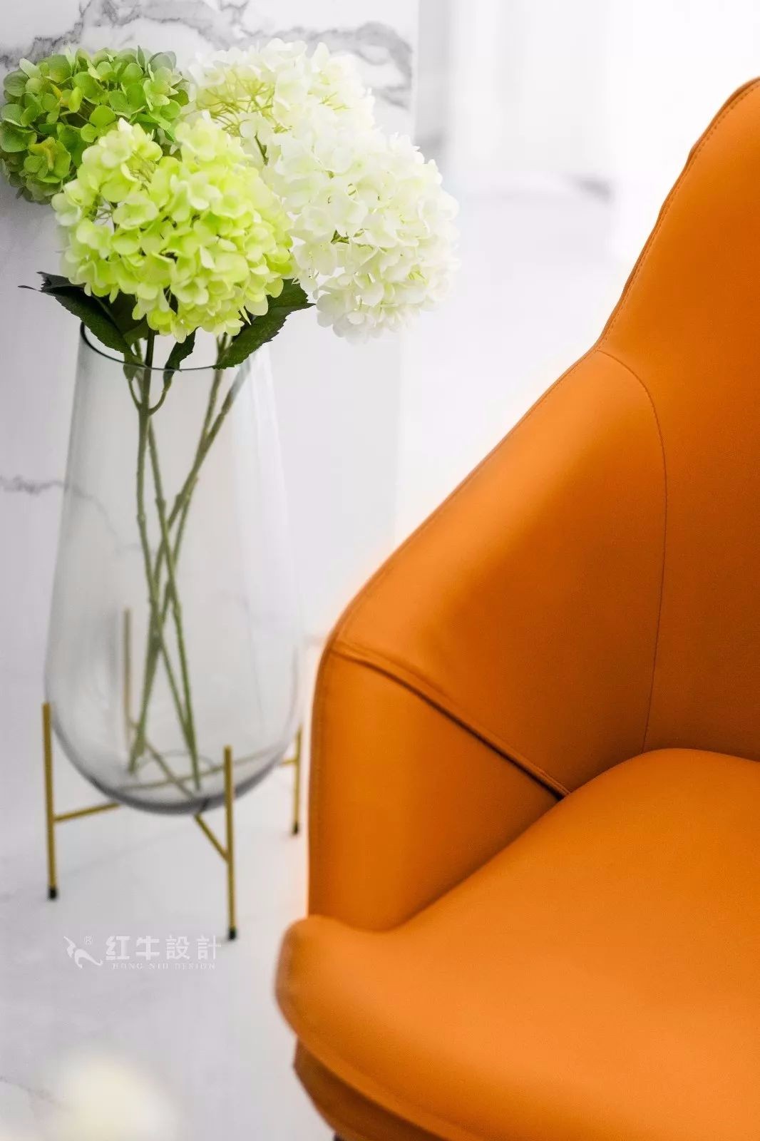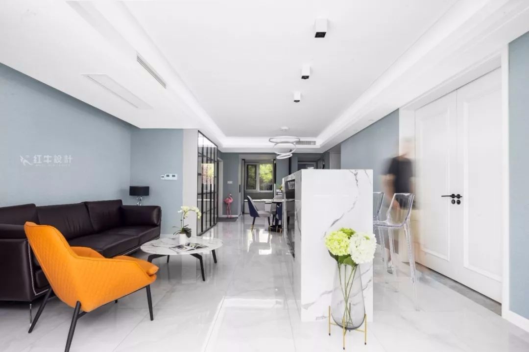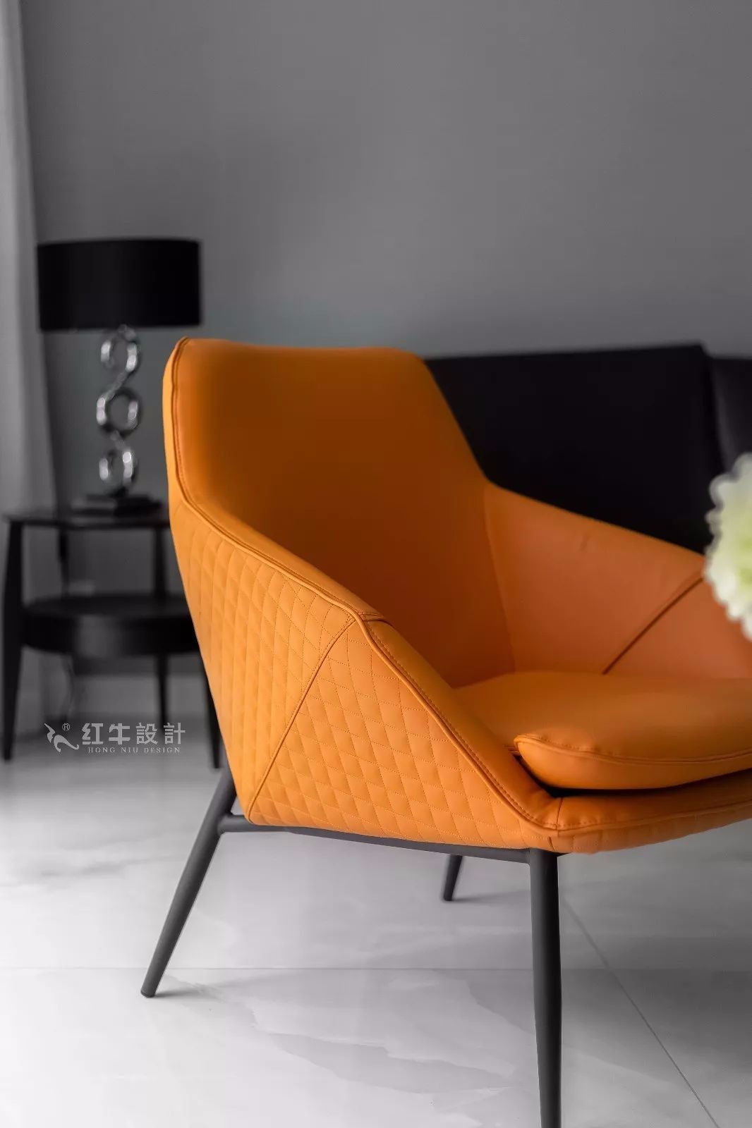 造型簡潔的橙色單椅,為客廳注入熱情與活力。