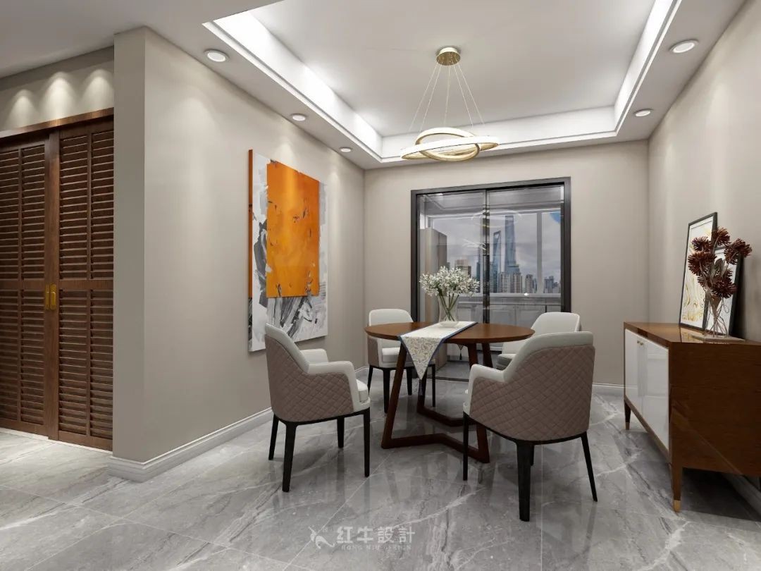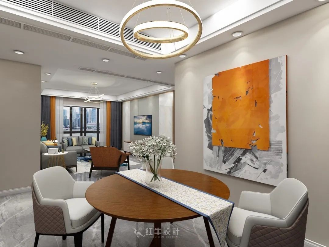 在方正規(guī)矩的居住空間里,有圓形來化解一下,視覺上會舒服很多。而且一家人圍著圓桌吃飯,會有一種溫暖親切的感受。