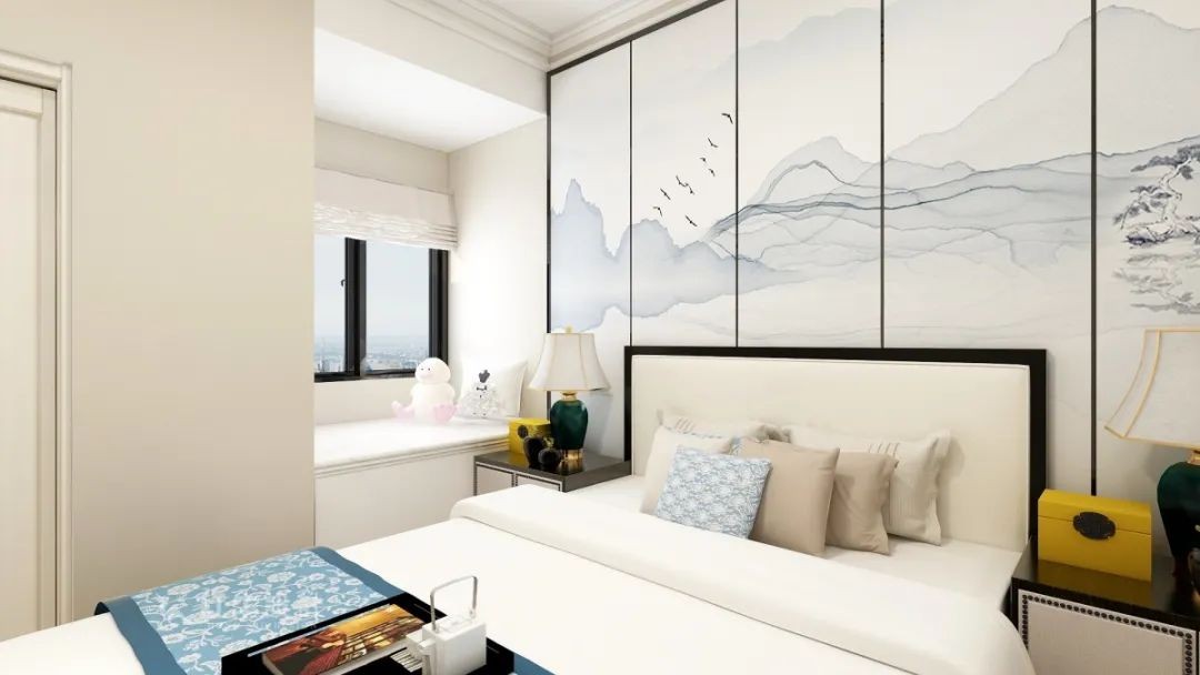 方正家具給人的感覺就是安定、大氣,黑白配色,帶來時尚感。硬包壁畫是水墨元素的現(xiàn)代表達,凸顯中式內涵。
