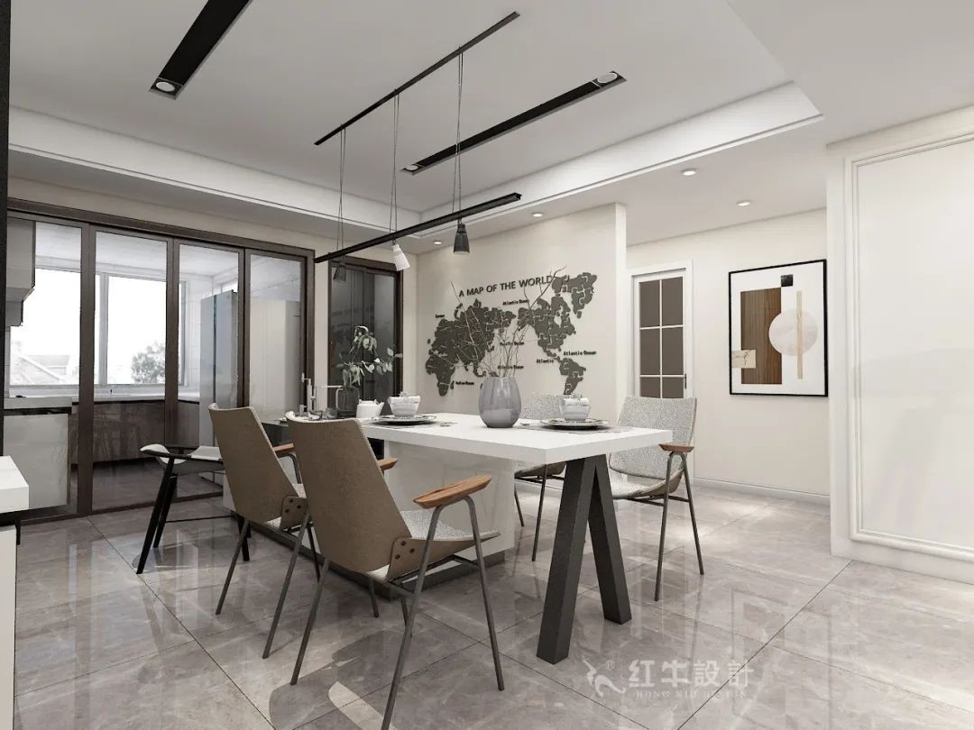 餐廳墻面涂刷了一幅世界地圖,極具個(gè)性。