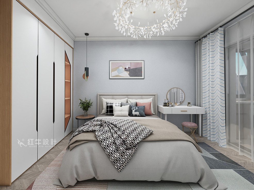 客餐廳色調(diào)清雅,休閑、隨性又不失精致,電視背景墻沒有過多的華麗修飾,給空間本身一個(gè)開拓、延展性,給居住者一個(gè)慵懶、明快的起居環(huán)境。主臥次臥,依靠北歐風(fēng)格家具本身的線條感,搭配同樣風(fēng)格的裝飾畫,給人以休閑自在的視覺感受。