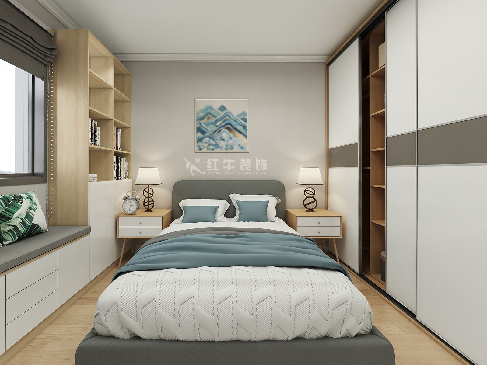 整體現(xiàn)代北歐風(fēng)格的設(shè)計(jì),素雅的多人沙發(fā),客廳在功能方面是會(huì)客休閑,整體的客廳設(shè)計(jì)象征著主人品位。深色地毯的搭配讓整個(gè)客廳在開放式中似乎又與餐廳相區(qū)別開來。簡約大方的地板設(shè)計(jì),正方體似的的長桌簡約而時(shí)尚。搭配上顯眼的綠色植物讓整個(gè)客廳呈現(xiàn)出一種生機(jī)勃勃的自然美。臥室是整套房子中最私人也是最體現(xiàn)出溫馨休閑感的空間,一般在設(shè)計(jì)時(shí)要體現(xiàn)出靜謐舒適的感覺,并且與其他空間明顯的區(qū)別。在設(shè)計(jì)時(shí)一般會(huì)根據(jù)主人的個(gè)性要求去設(shè)計(jì)。在這套方案效果中,臥室以白色這種淡然明亮的色調(diào)出現(xiàn),它的整個(gè)面積并不大,由于臥室的核心設(shè)計(jì)是床與衣柜,所以除了擺設(shè)這簡約的雙人床和臥室必備的衣柜、以外,沒有再過多的放置其它物品。整個(gè)臥室呈現(xiàn)出一種淡靜的清新感,簡約而素雅。