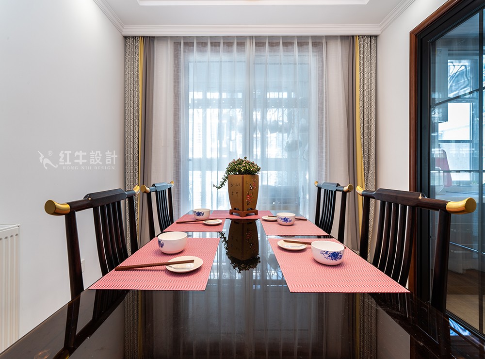 餐廳延續(xù)了客廳的風(fēng)格,餐桌椅也選擇了相近的樣式,使本就處于同一空間的客餐廳更具有整體性。粉色的餐墊,簡單卻很協(xié)調(diào),再擺上餐具,儀式感棒棒噠!