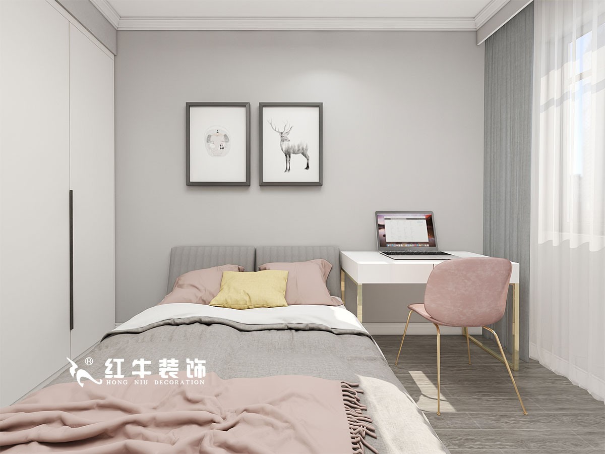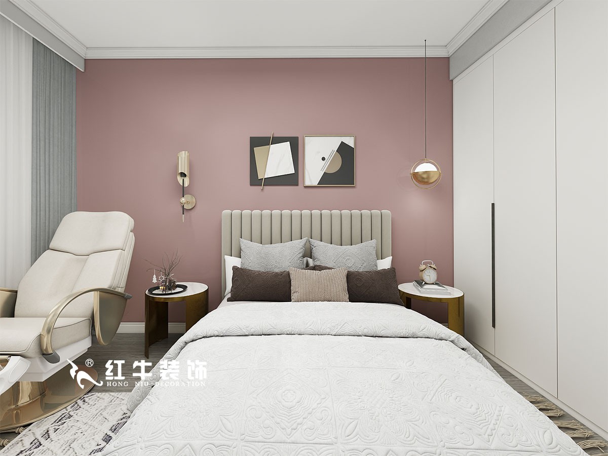 背景墻選擇了不落俗套的粉色系,結(jié)合紗簾看起來更有夢幻感。床頭的設(shè)計(jì)起到了中和的作用,不會讓粉色看起來太過甜膩,像是燈具、裝飾畫的選擇就營造出細(xì)節(jié)的精致感,展現(xiàn)出輕奢氣質(zhì)。