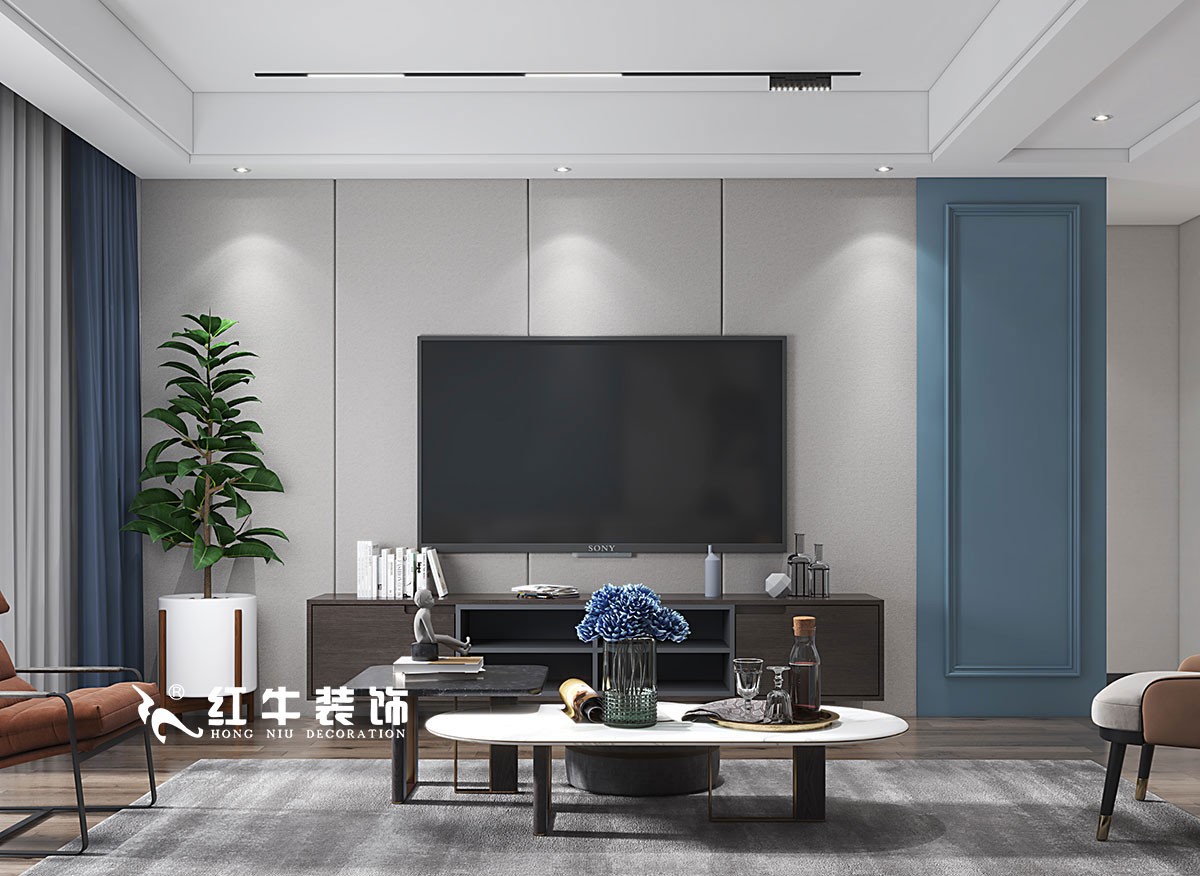 本案定義為現(xiàn)代簡約風(fēng)格,在現(xiàn)代風(fēng)格中也穿插了一些北歐的元素,墻面不再使用傳統(tǒng)的白色,使用了一些顏色中性的深灰色,和顏色相對(duì)鮮艷軟裝相互呼應(yīng),使得空間色彩有對(duì)比性,這樣的視覺反差,使得效果整體提升一個(gè)品味,空間不單調(diào)且舒適。