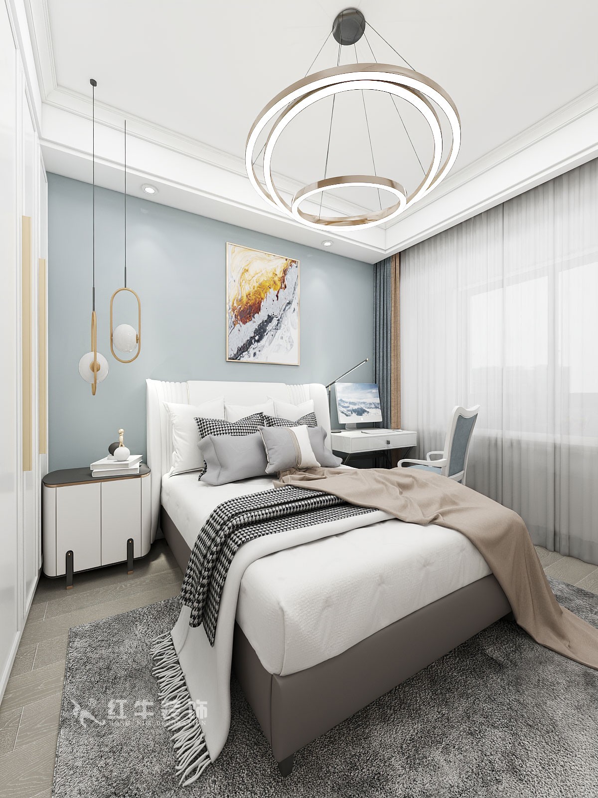 本案設(shè)計在跟客戶溝通后整體風(fēng)格定位為簡歐偏輕奢風(fēng)格
