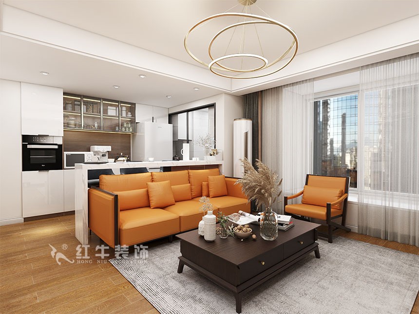 沙發(fā)不要靠墻,這樣設(shè)計才夠別致?。櫨阓東城水岸115㎡現(xiàn)代風(fēng)格_3室2廳1衛(wèi)_舊房裝修_全包17萬)02