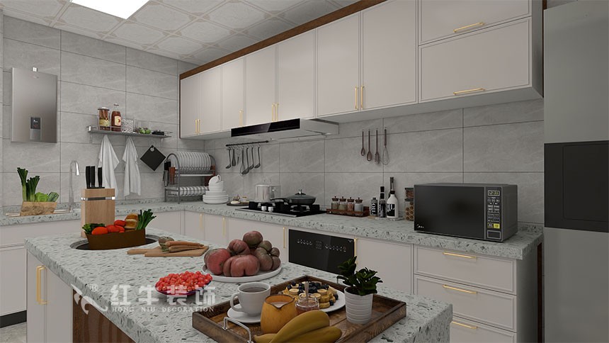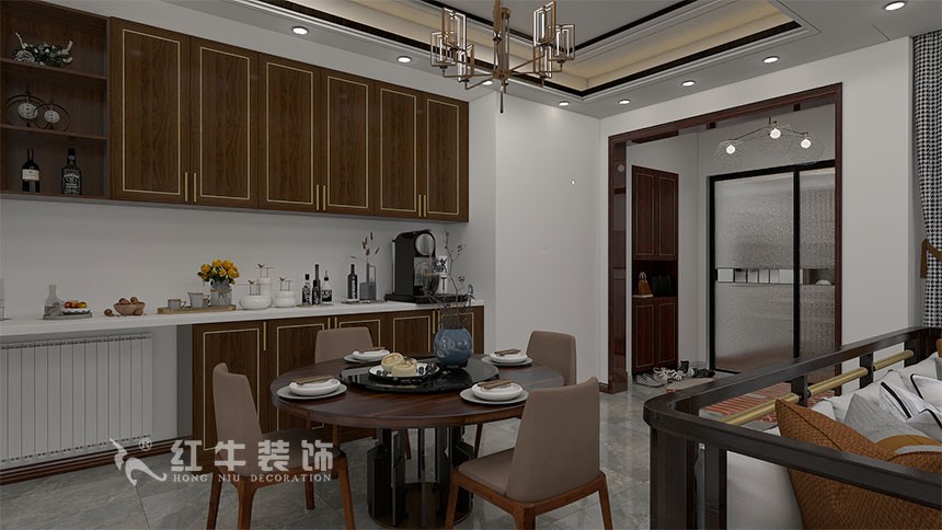 本案是四室兩廳兩衛(wèi)一樓帶院子的戶型三代人居住,因為主要是父母主,風格定義是新中式,以現(xiàn)代美感來塑造空間氛圍,時尚與古典相互融合,有內(nèi)有外,內(nèi)外兼修。整體空間做了調(diào)整,打開入戶右邊送的設(shè)備平臺,設(shè)計為書房,平時坐在書房看書的時候,也可以一覽院子里的美景,進入大門后,做了一個隔斷分區(qū),分割一個入戶門廳,提高利用率和私密性,主臥室的衛(wèi)生間也做了調(diào)整,改變以前的落地窗,一分為二,衛(wèi)生間的功能/私密性都不影響的情況下,還多了一個儲藏室。出房間也做了調(diào)整,打掉所有的非承重墻,廚房中間做了中島臺,平時可以用作早餐臺逢年過節(jié),大家聚在一起包餃子,其樂融融,生活氣息濃厚。