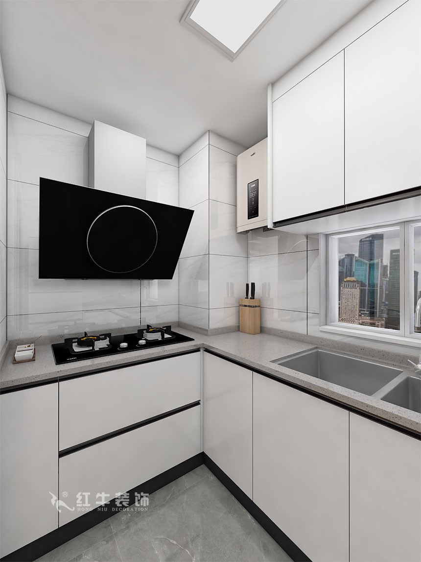 本案設(shè)計(jì)業(yè)主父母自住,卡座設(shè)計(jì)解決沙發(fā)無法放置的問題,增加座位空間,同時(shí)也增加儲(chǔ)物空間。顏色明亮。廚房結(jié)構(gòu)改造一下,解決了客廳可以看見煙機(jī)灶臺(tái)的尷尬。