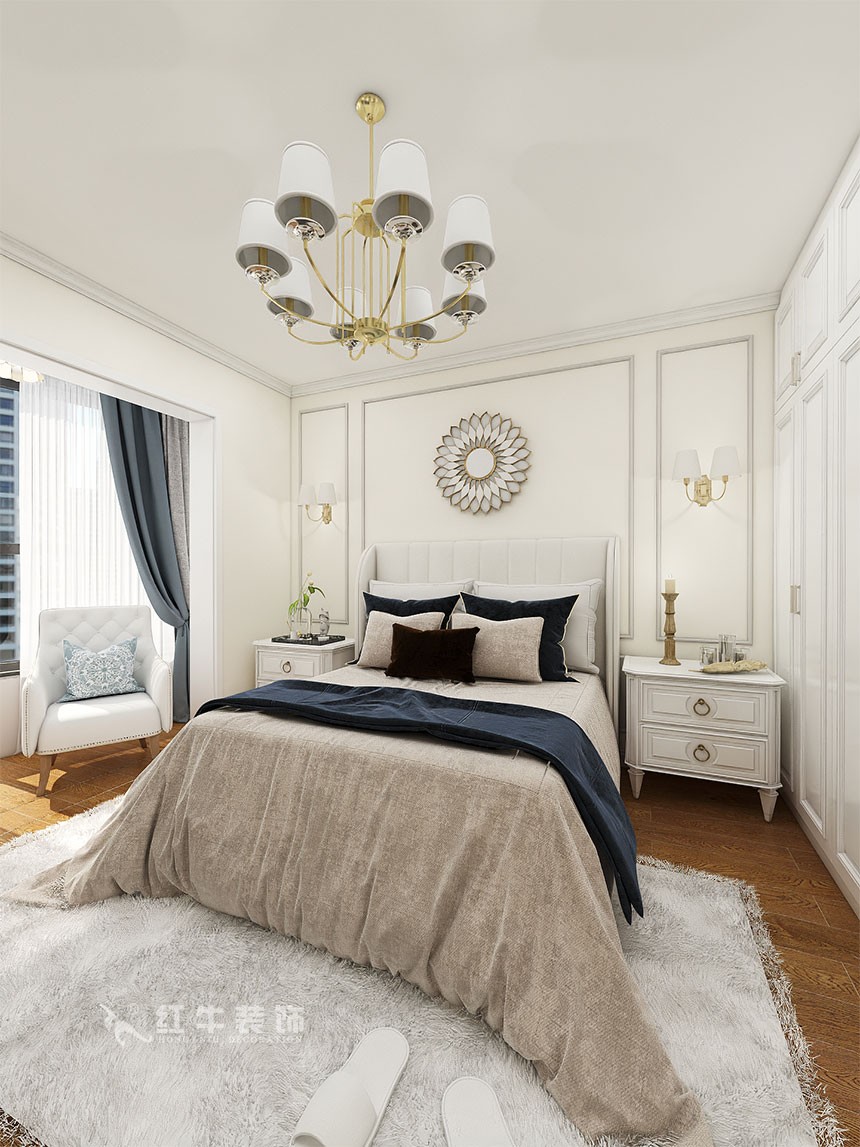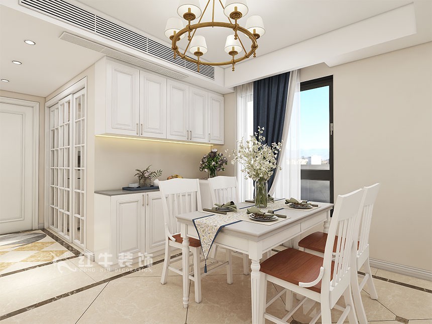 因戶型空間原布局較為復(fù)雜且局限,業(yè)主需求又為簡(jiǎn)歐風(fēng)格,所以講戶型稍作改動(dòng)后根據(jù)溝通進(jìn)行軟配上的多元素設(shè)計(jì)。