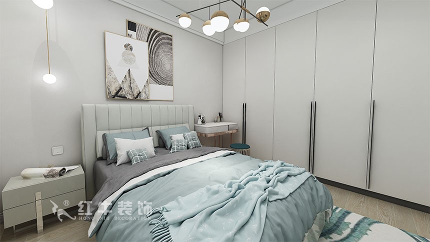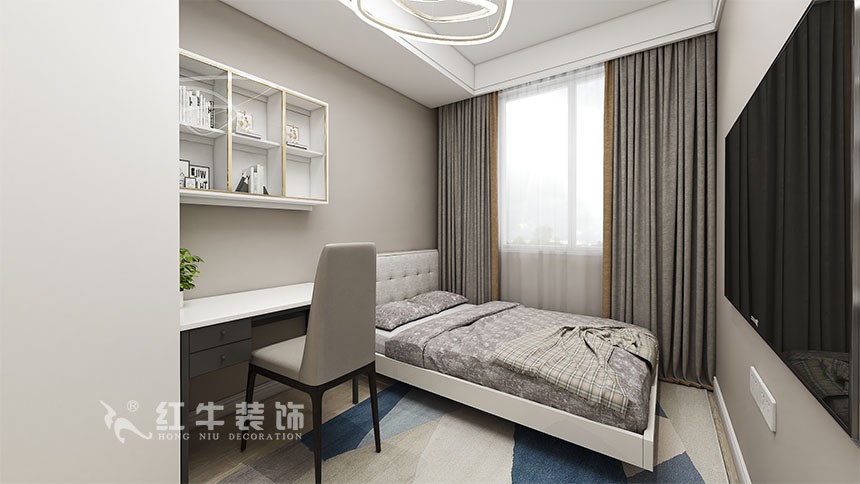 整體風(fēng)格簡約,白色和淺灰色營造出溫馨的生活氣息,次臥室設(shè)計(jì)了組合柜,既有學(xué)習(xí)的區(qū)域同時也兼顧了休閑空間。