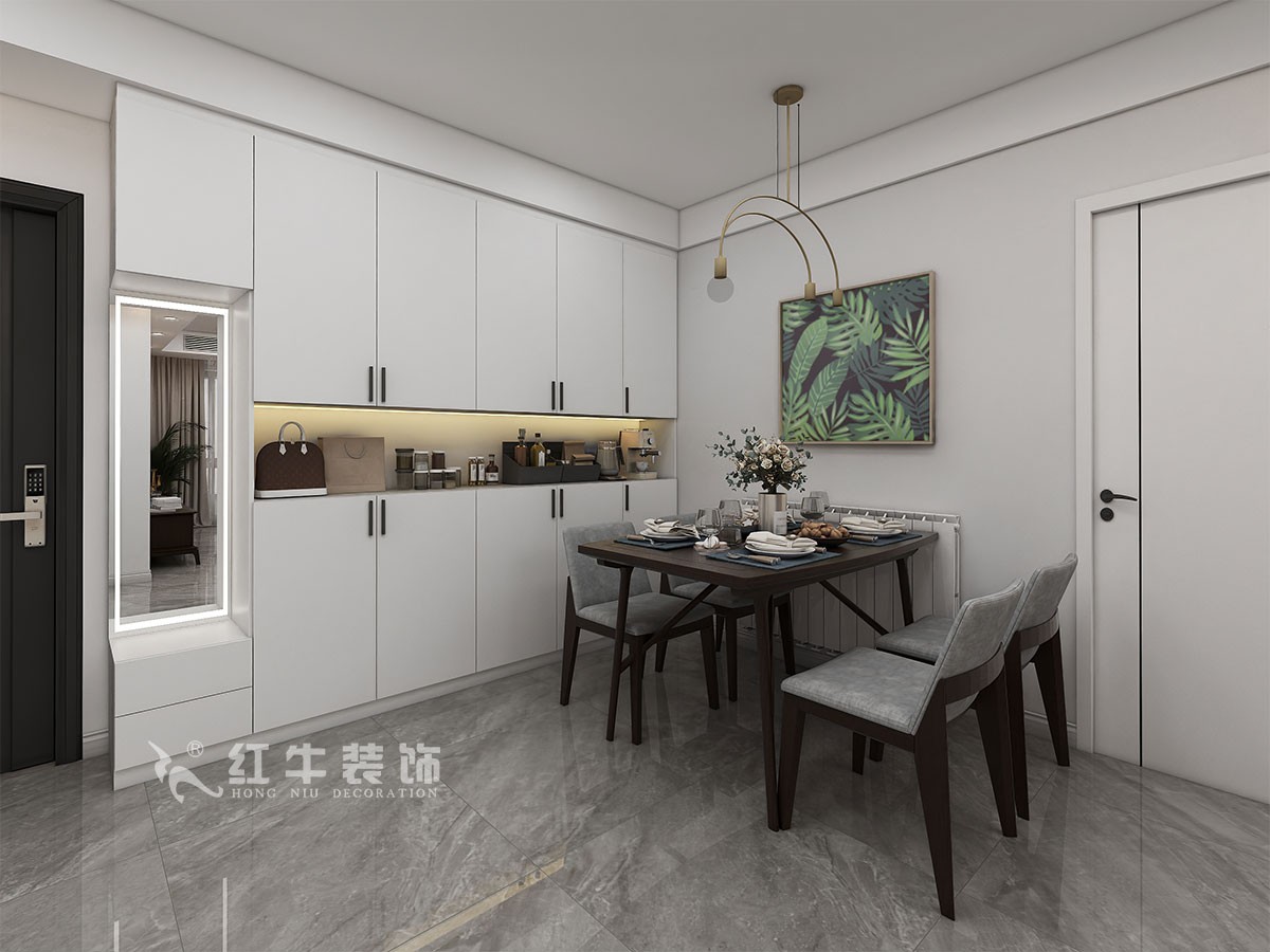 本案簡(jiǎn)約風(fēng)格,通過業(yè)主溝通之后,把衛(wèi)生間改成干式分開,同時(shí)門廳部分增加了儲(chǔ)物空間,在空間的設(shè)計(jì)上強(qiáng)調(diào)的是室內(nèi)空間開闊的理念,這樣的設(shè)計(jì)風(fēng)格沒有過多的裝飾物,主要以簡(jiǎn)單的線條和裝飾簡(jiǎn)潔的造型來體現(xiàn)出現(xiàn)代簡(jiǎn)約型的設(shè)計(jì)。