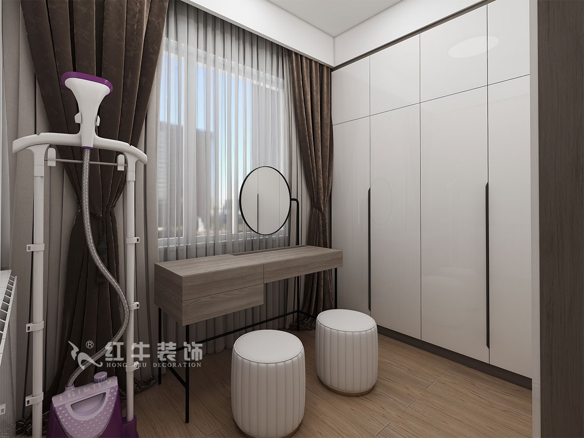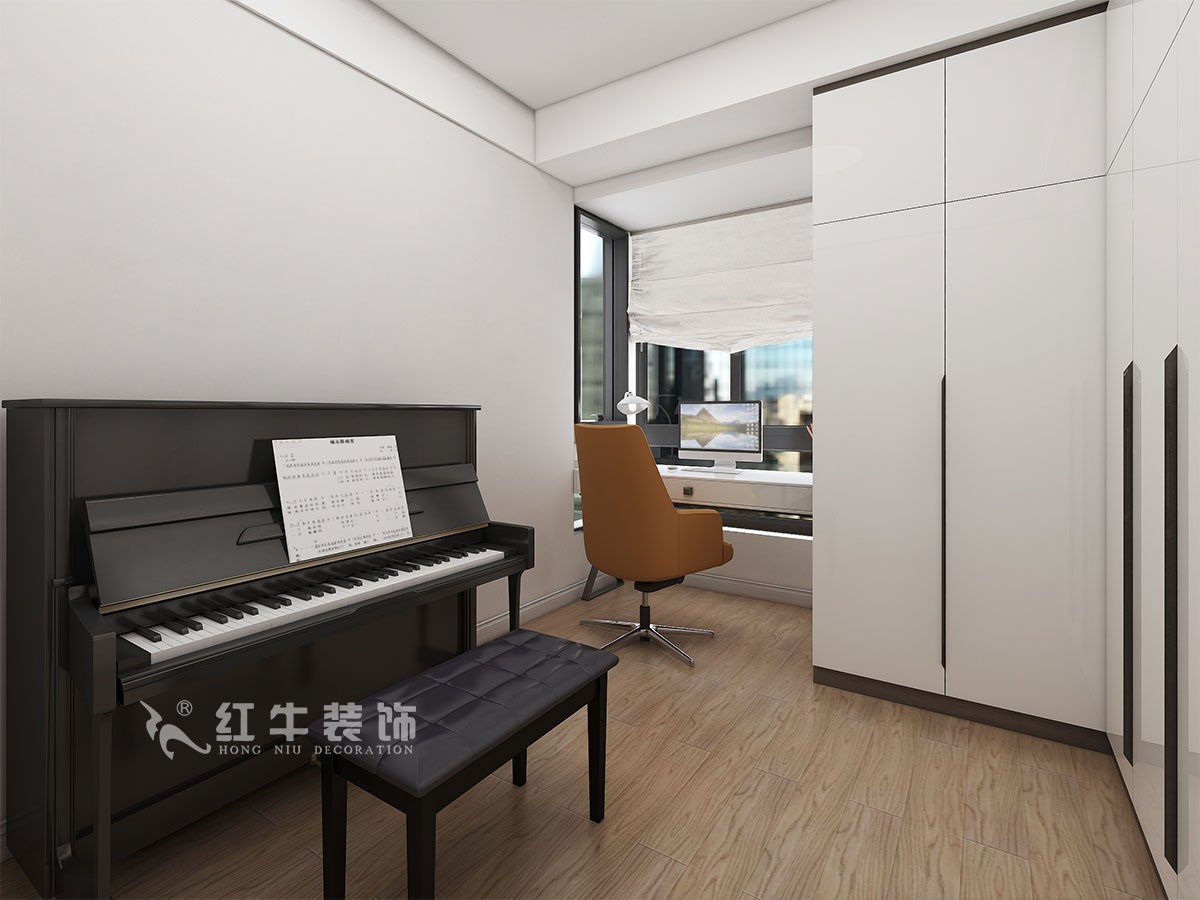 戶型本身的結(jié)構(gòu)比較規(guī)整,結(jié)構(gòu)上幾乎沒有做什么改動,客戶不喜歡多余的裝飾,整體方案簡潔大方。客戶需要一個大的衣帽間,也是母女倆的化妝間。書房房臨窗處書桌,給了本就不大的空間擺放鋼琴,這樣視覺更開放,心情也自然就舒緩很多。