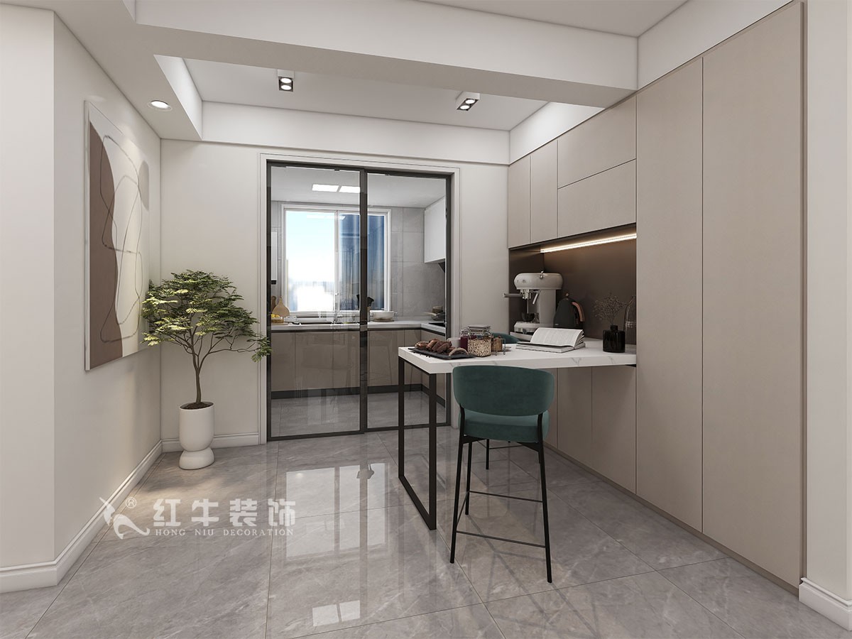 本案簡約風(fēng)格,通過業(yè)主溝通之后,把靠著過道的臥室改成了餐廳,擴(kuò)大了門洞之后過道光線更好,同時(shí)還弱化了過道的長度。次臥室改動(dòng)門的位置使得擴(kuò)大了空間,也增加了儲(chǔ)物功能。在空間的設(shè)計(jì)上強(qiáng)調(diào)的是室內(nèi)空間開闊的理念,這樣的設(shè)計(jì)風(fēng)格沒有過多的裝飾物,主要以簡單的線條和裝飾簡潔的造型來體現(xiàn)出現(xiàn)代簡約型的設(shè)計(jì)。