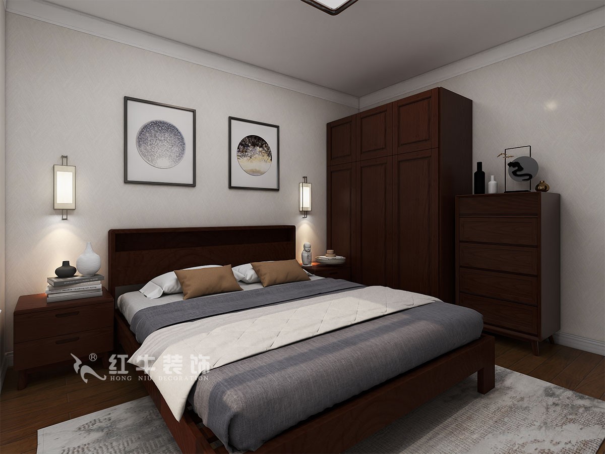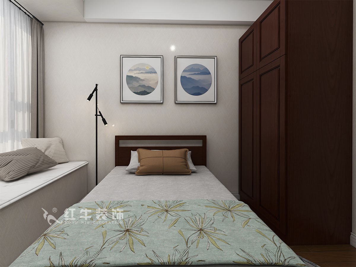 此案主要是一個人居住,在舒適度上要求比較高,臥室是整套房子中最私人也是最體現(xiàn)出溫馨休閑感的空間,在設(shè)計(jì)時體現(xiàn)出靜謐舒適的感覺,并且與其他空間明顯的區(qū)別,把原本主衛(wèi)改成衣帽間,增加儲物空間,這樣舒適度更好,區(qū)域劃分明顯,動靜分離。吊頂簡潔大氣,配以中式家具,完美闡釋了簡約中式風(fēng)格。搭配上顯眼的綠色植物讓整個空間呈現(xiàn)出一種生機(jī)勃勃的自然美。